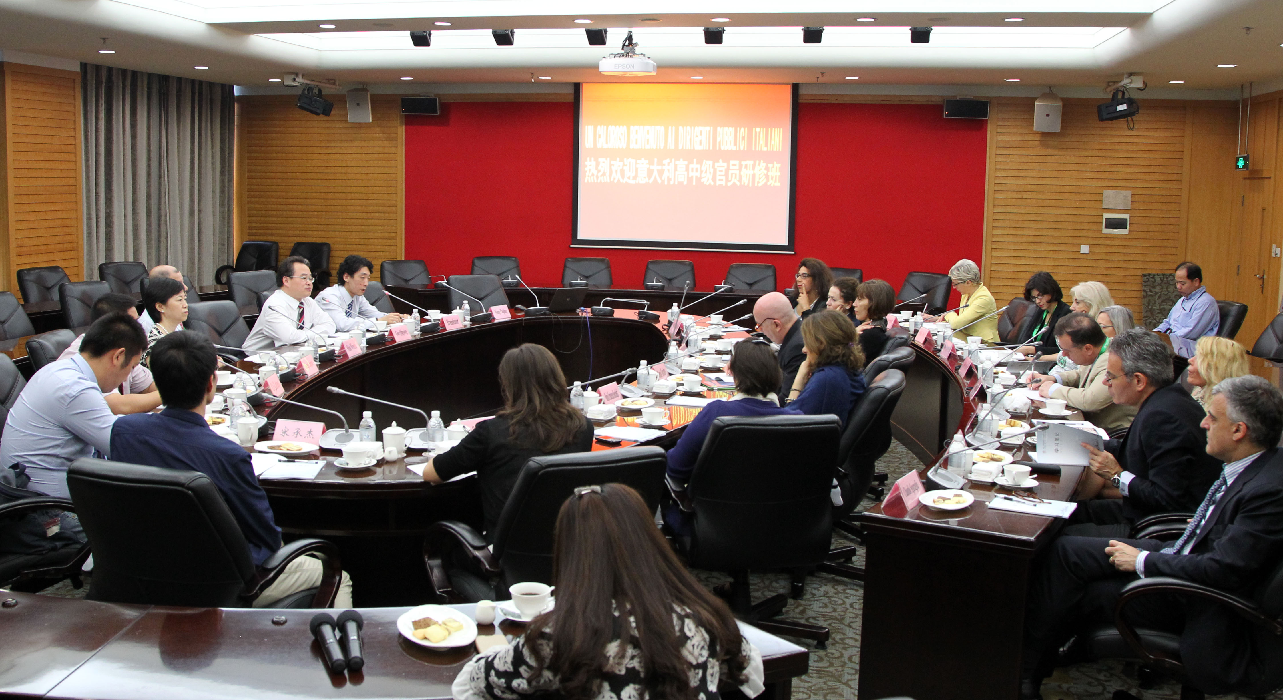 Commissioned by the Training Center of Chinese Academy of Governance,Shanghai Administration Institute (SAI) had the seminar of high-and-medium-ranking officials from Italy to attend training on June 27, 2014. It was their second visit to SAI following the visit of 15 high-and-medium-ranking officials from Italy last December.