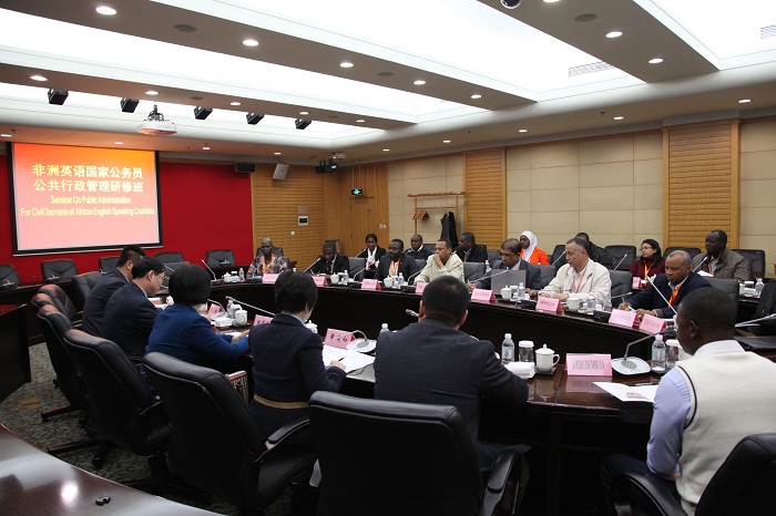 Entrusted by the Training Center of Chinese Academy of Governance, Public Administration Seminar for the Civil Servants of African English-speaking Countries was running at Shanghai Administration Institute (SAI) on the morning of March 20. All the 18 trainees got the training,who were civil servants at the level of Director-general and Director respectively from ten African countries as follows: Egypt, Ethiopia, Ghana, Lesotho, Liberia, Sierra Leone, Uganda, Nigeria, Mauritius and South Sudan. CHENG Cize, Deputy Director of the Training Center of Chinese Academy of Governance, paid a visit to SAI together with the seminar.