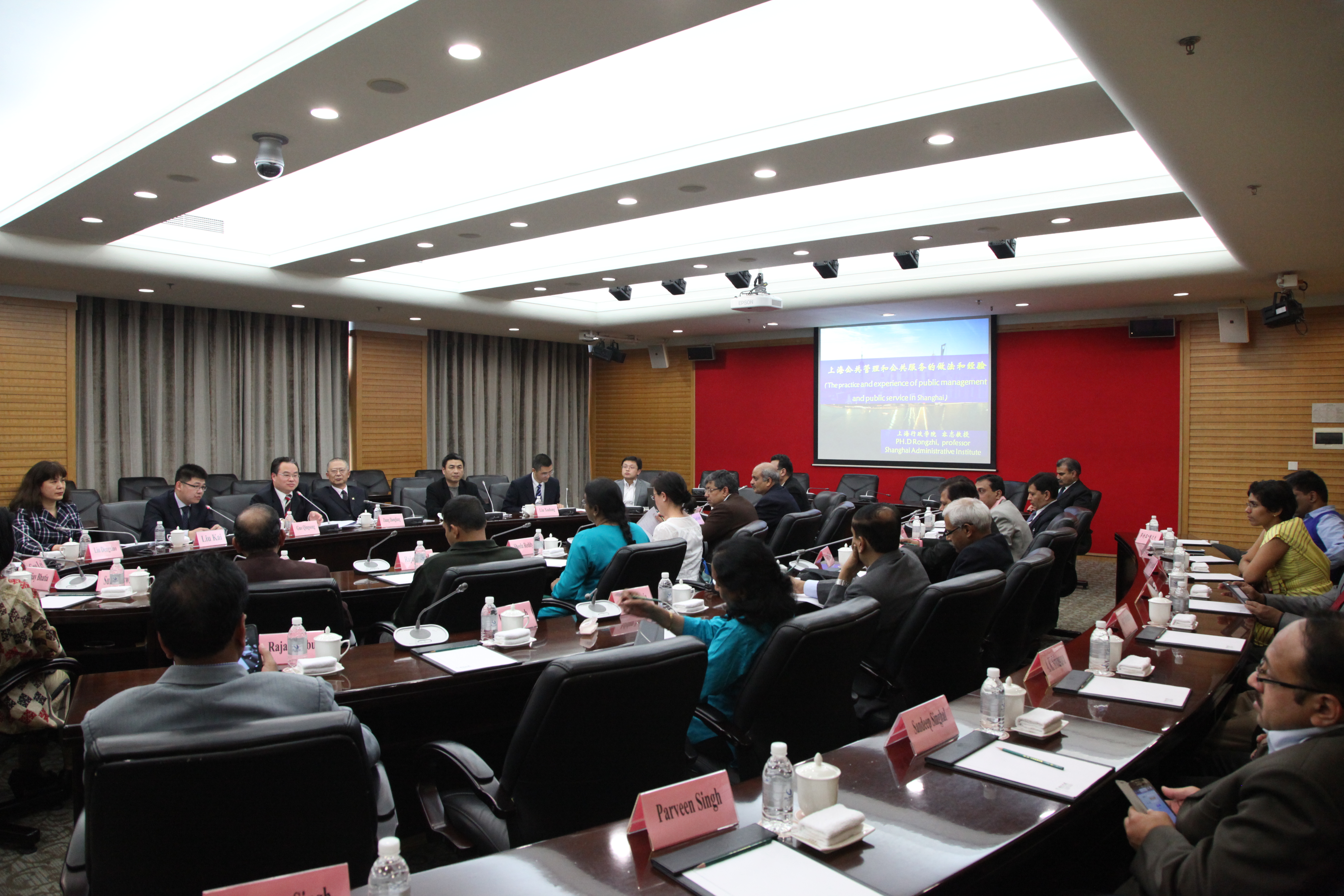 On March 19, GUO Qingsong, Vice President of Shanghai Administration Institute (SAI) met the delegation from Indian Institute of Public Administration (IIPA). Mr. GUO welcomed the arrival of the delegation on behalf of SAI. He briefed the SAI’s model of the group school-running as 1+5. “1” means the main campus of SAI, and “5” refers to the five branch institutes of SAI. Under the framework of 1+5, Shanghai Administration Institute undertakes nearly all the training tasks for Party leaders and government officials as well as some professionals and overseas in Shanghai. Centered on teaching, research and think tank, SAI is exerting its comprehensive strength to rank in the top administration institutes in Asia as the goal. Shanghai Administration Institute has been maintaining good partnership with 28 institutes or universities all over the world. In order to enhance its internationalization, SAI is open to the world and willing to work together with its counterparts in academic and cultural areas. The head of the Indian delegation, Ms. Sheela Reddy, expressed her gratitude to SAI. She said that this delegation consisted of high-ranking officials in India’s different public sectors. The visit to China was part of its training program, and the main purpose of this trip was to learn some useful experience in the field of public servants training and management. The delegation members were impressed by China’s development after they had personal experience in Beijing and Shanghai. Ms. Sheela Reddy hopes that IIPA and SAI can enlarge cooperation and further promote exchanges to achieve the win-win effect.
