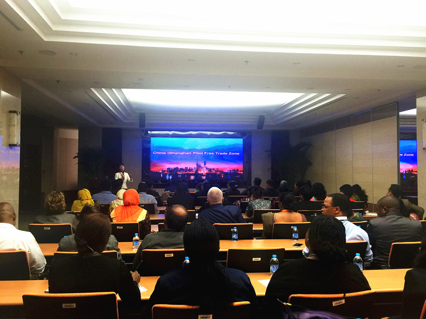 On the morning of the day, Mei Lihong, Provost of SAI, accompanied by the heads of the Foreign Affairs Division and the Training Division, warmly met the trainees, briefing on the general information of the institute. Professor Wang Zhiping, Director of the Department of Economics, gave a lecture in English entitled “the Course and Inspiration of Shanghai’s Opening up and Reform”, and then interacted with the trainees on the questions raised by them, such as the development opportunities of coastal cities, the gap between the rich and the poor and services concerning foreign affairs. In the afternoon, the trainees visited China (Shanghai) Pilot Free Trade Zone, where Jiao Jian, Director of Waigaoqiao Free Trade Zone Office, introduced to them the circumstances of the free trade zone since its operation two years ago. Later, they visited the comprehensive service hall and got the first-hand experience of the “one-stop” public service mode.