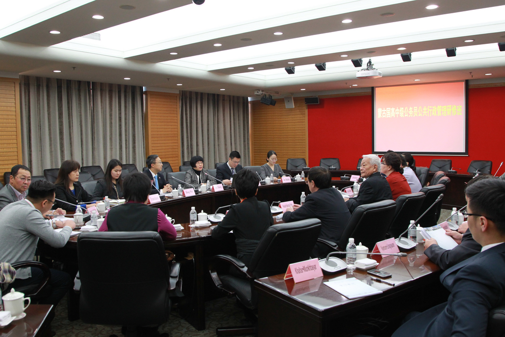 Entrusted by the Training Center of Chinese Academy of Governance, Shanghai Administration Institute received senior and intermediate Mongolian civil servants to research and study on December 7. The class consisted of 18 officials at the bureau or division level from the Cabinet Secretariat of Mongolia, the National Academy of Governance (NAOG), Defense University of Mongolia, Ministries of Education, Finance and Labor. JIANG Wei, the Deputy Director of Training Center of Chinese Academy of Governance, visited SAI with the class.