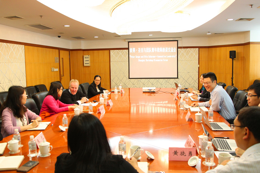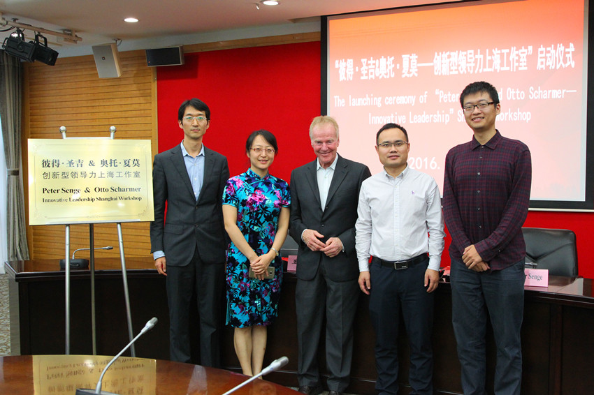 After their self-introduction, Professor Senge said that he valued such cooperation opportunities, and that it was the first time he had in-depth cooperation in China and was also a learning process for him. He said that in spite of their different research interests, they had one thing essentially in common—innovative leadership. He also stressed that he valued practical experience as learning about music from books produced quite different feelings from going to concert and another quite different feelings were from making music by oneself. He would do all he could to help the team have more thorough experience and hoped to create more opportunities for the team to learn and experience his and Professor Scharmer’s ongoing works. Professor Senge also made specific requirements on the cooperation mode of the team, the language proficiency of the young teachers, etc.