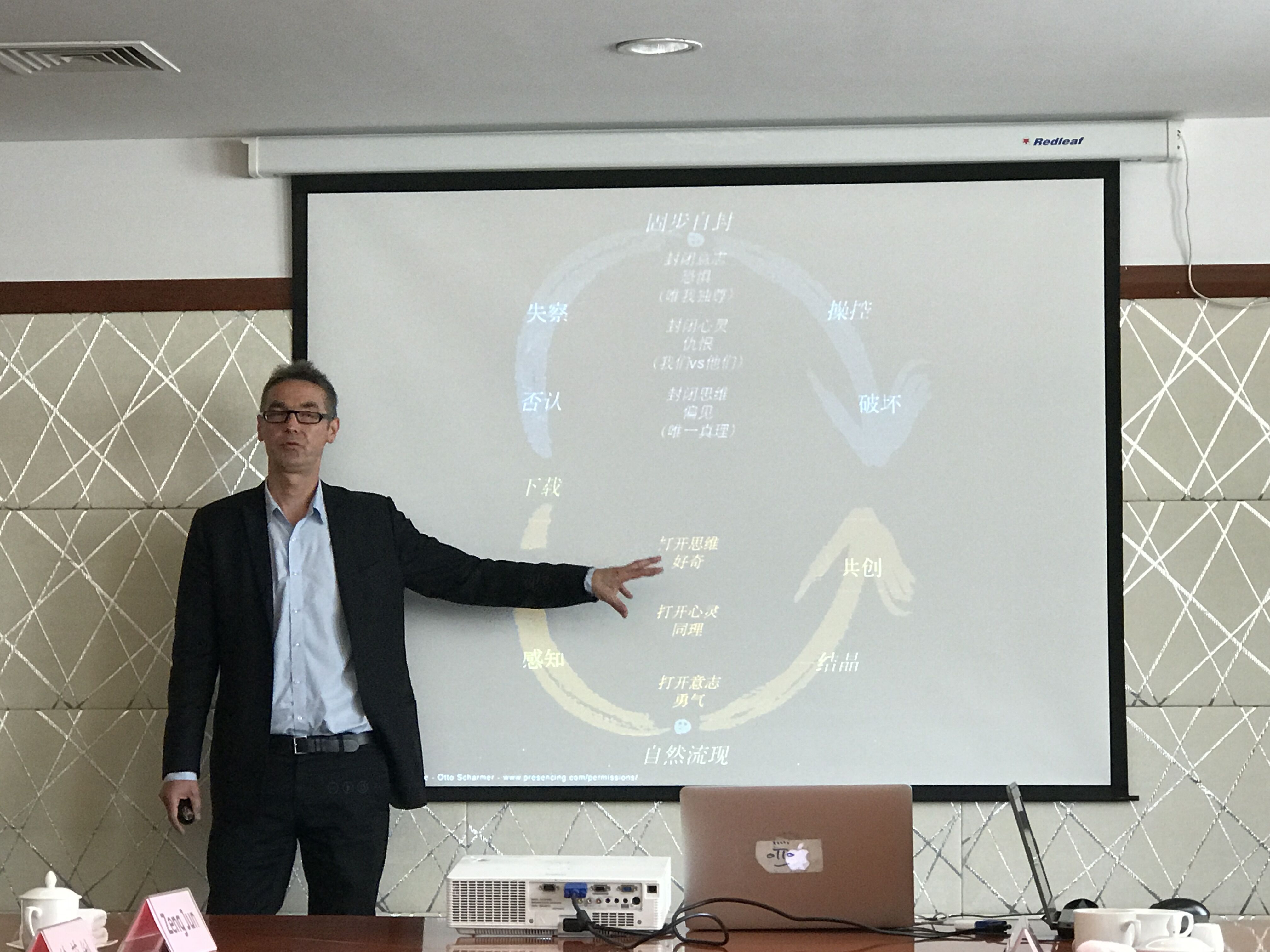 After the ceremony, Professor Otto Scharmer shared the latest achievements of Theory U with young teachers of the workshop.