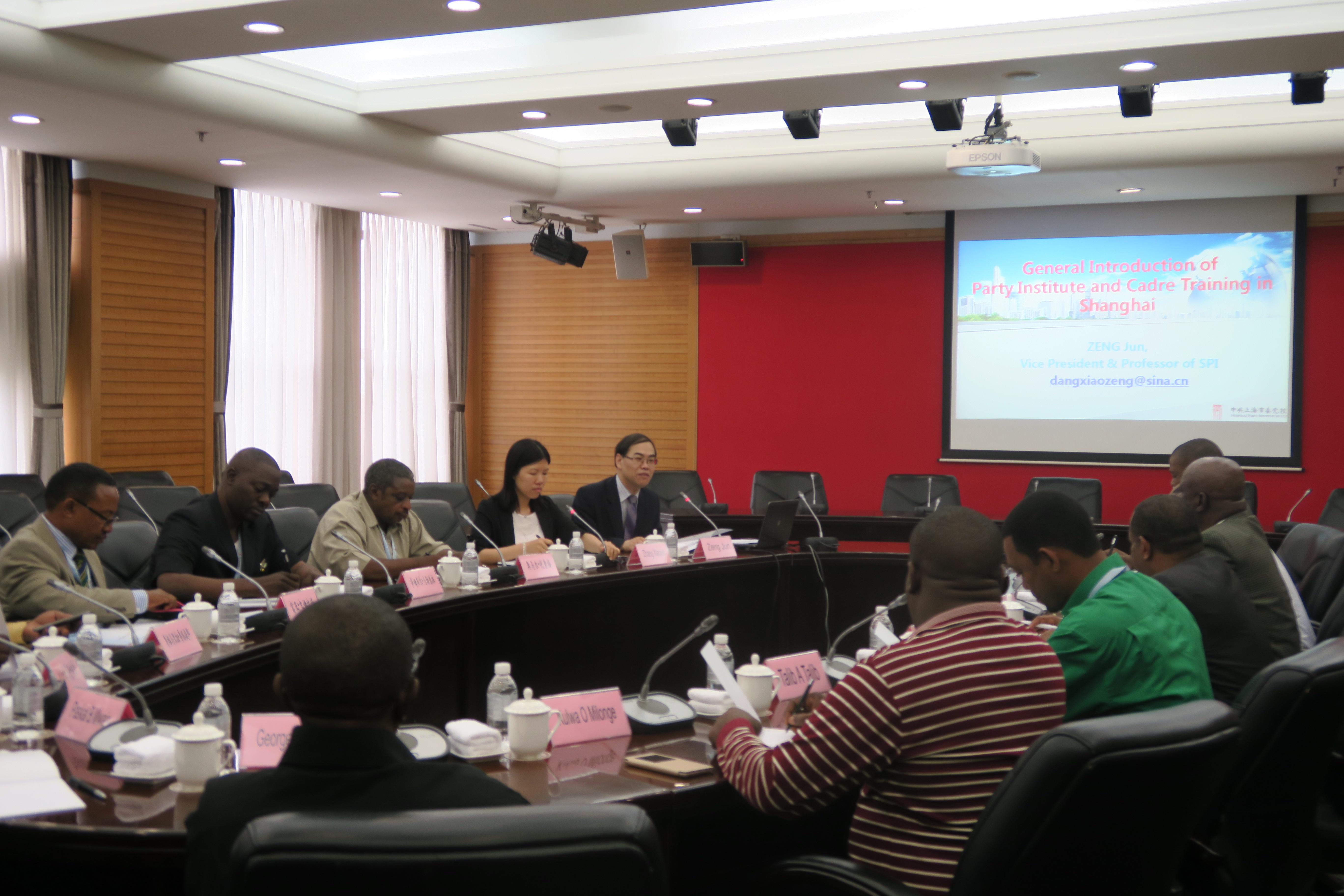 SHEN Wei, Executive Vice President of SPI met the delegation and delivered a welcome speech. He said that the class was held at the same time with the Belt and Road Forum, on which China’s President XI Jinping put forward the core spirit of the Silk Road: peaceful cooperation, openness and inclusiveness, mutual learning, mutual benefit and win-win. In this context, it was of great significance for the Executive Committee of CCM to have a class here in Shanghai. He hoped the delegation would learn about the practice of CPC in politics, economy, society, culture and ecology through Shanghai, and experience the great achievements made in the reform and opening up in China and Shanghai. Pereira Silima, head of the delegation, Member of the Central Committee of CCM and Coordinator of Secretariat of the Central Committee said in his speech, “I would like to extend my gratitude to the Chinese government and people for the cooperation and help offered to Tanzania. CPC has made achievements appealing world-wide attention in economic and social development. My colleagues and I came to China and Shanghai to learn the experience of CPC in economic and social development and Party building. We are convinced that our discussion and communication in Shanghai will be exciting and fruitful. ”