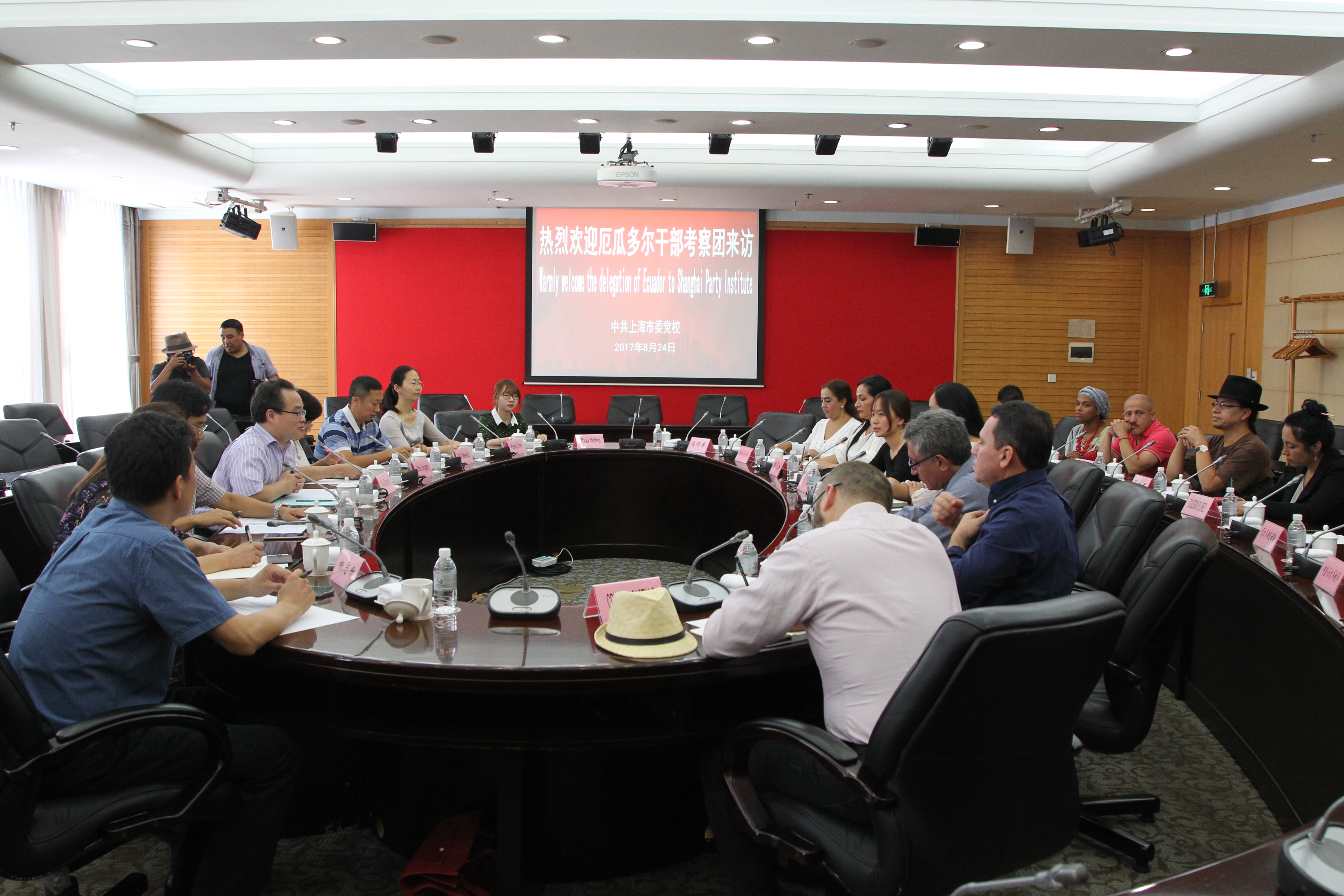 On August 24th, a 14-member cadre delegation of PAIS Alliance from Ecuador headed by Executive Secretary Gabriela Rivadeneira visited Shanghai Administration Institute (SAI) to learn about cadre training, Party building, reform and opening up in Shanghai and relevant circumstances. The delegation had the company of working staff from the International Department of the Central Committee of CPC and Foreign Affairs Office of the Shanghai Municipal Peoples Government and Consul General of the Ecuadorian Consulate in Shanghai Ms. Karina Soledad Morales Herrera. Mr. GUO Qingsong, Vice President of SAI, presided over the meeting, with Ms. ZHOU Jingqing, Director of the Research Division, and Mr. ZHAO Gangyin, Deputy Director of the CPC History and Party Building Teaching and Research Department being present on the occasion.