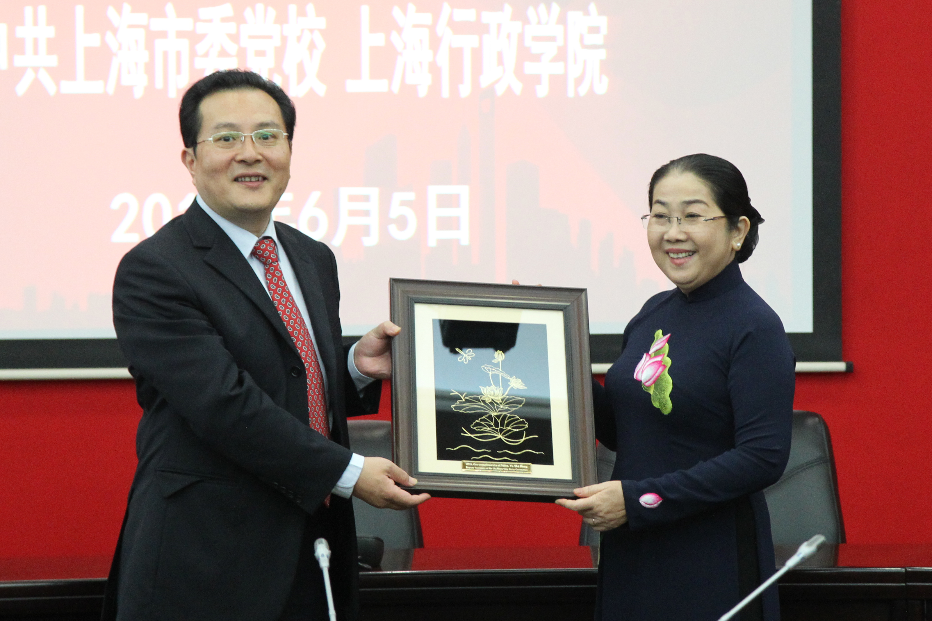 Shen extended his warm welcome to the delegation. He said that SAI has been maintaining close relationships with Vietnam since the first communication between each other in 2004. The two parties signed the cooperation agreement and witnessed sound cooperation from then on. Shen made a detailed introduction about the training of Shanghai Party Institute of CPC (SPI) and Shanghai Administration Institute(SAI), emphasizing that SPI is a department affiliated to Shanghai Municipal Committee of CPC, and SAI is a department directly under Shanghai Municipal Government. SPIs training is targeted at Party leaders of Shanghai and SAI is mainly training governmental public servants. SPI and SAI implement “One System, Two Names” practice. Shen also pictured the group school-running system as 1+5+16 and the key training programs of SPI and SAI, especially the 2+X program, namely, 2 stands for the Organizational Department of Shanghai Municipal Committee of CPC and Shanghai Party Institute of CPC, X means one or more than one of the government departments. Such programs undertake seminars on special topics and decision-making work as one, in order to better promote the central task of Shanghai government. SPI and SAI’s training is aimed at improving trainees’ capacity and serve the overall work of the social and economic development of Shanghai. Recently, SPI and SAI has done more than 100 entrusted training programs from other provinces and over 30 training programs from abroad, with the training scales of 50000 person times annually. The major subjects takes up 70% of the overall subjects, among which are Marxism, Socialism with Chinese characteristics, General Secretary Xi Jinpings series of important speeches. Finally, the two parties reached agreements on the training programs designed for the senior and middle public servants of Ho Chi Minh City from 2017 to 2019, which SAI has devoted so much to arrange.