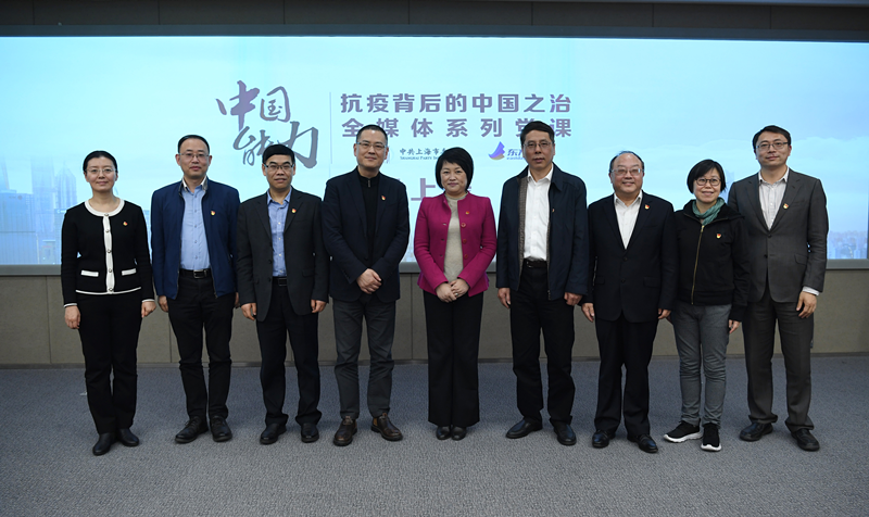 On the morning of April 16, an all-media series of the Party Lectureson the China’s Capacity: China’s Anti-epidemic Governance was jointly launched by Shanghai Party Institute of CPC (SPI) and Eastday.com with an inaugural ceremony on Eastday.com. The startbutton was pressed jointly by HU Peiyan (Deputy Director of the Publicity Department of CPC Municipal Committee), XU Jiangang (Executive Vice President of SPI), and XU Shiping (President and Editor-in-chief of Eastday.com). The ceremony was chaired by ZENG Jun (Vice President of SPI) and attended by HE Jiliang (CPC Secretary and Chairman of Eastday.com).