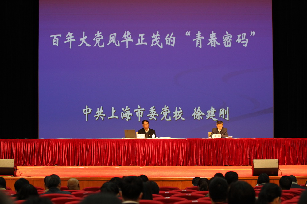 On the afternoon of April 13, the SPI (SAI) Party lecture on the theme oflearning and educating the Party history and the opening ceremony of the 9th Culture and Art Festival was held in SPIs auditorium. The Party lecture was given by XU Jjiangang, member of the Party History Lecturer Team under CPCs Shanghai Municipal Committee and Vice Executive President of SPI (SAI). the lecture was hosted by LI Bo, Vice President of SPI (SAI) and Secretary of the SPI Party Committee. The members of the School Board, the Discipline Inspection Team of the Municipal Discipline Commission stationed in the Organization Department of the Municipal Committee of CPC, and the Party Branch Secretary were seated in the front row. All the faculty members and postgraduates, more than 500 in total, attended the Party lecture.