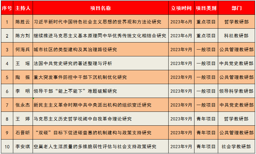 校(院)获得立项的10项课题见列表(按项目类别、职称、部门排序):