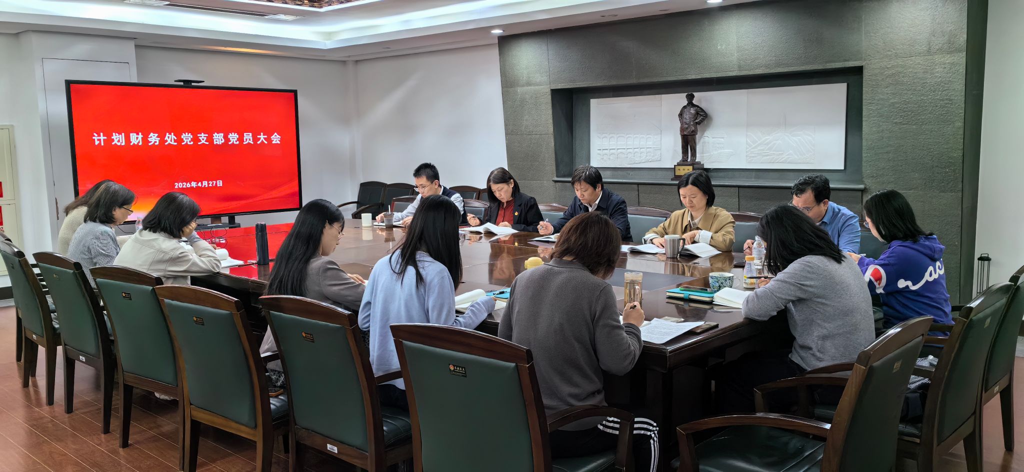4月27日下午,计划财务处党支部举行主题党日活动,进行《习近平关于树立和践行正确政绩观论述摘编》第三次集中学习,并交流分享学习体会。