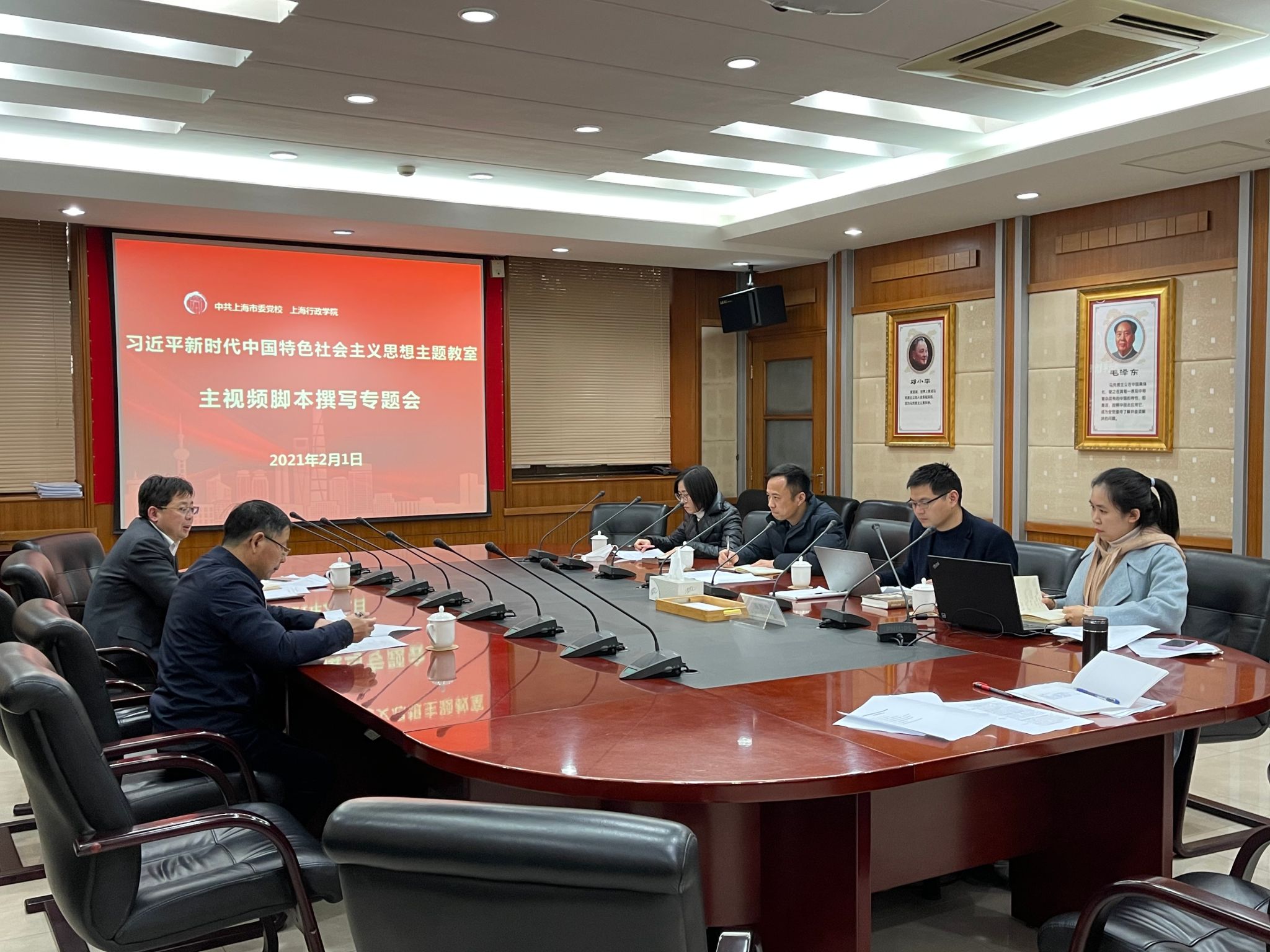本网讯 2月1日下午,“新时代 新思想 新实践——习近平新时代中国特色社会主义思想上海实践”主题教室建设主视频脚本撰写专题会在市委党校举行,马克思主义学院执行院长王公龙主持会议。