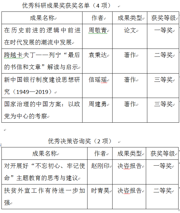 本网讯 近日,全国党校(行政学院)系统第十三届优秀科研成果奖获奖名单出炉。本届评奖共评选出200项获奖成果,其中128项优秀科研成果奖,72项优秀决策咨询奖。我校(院)共6项科研咨询成果获奖:4项成果获优秀科研成果奖,2项成果获优秀决策咨询奖。