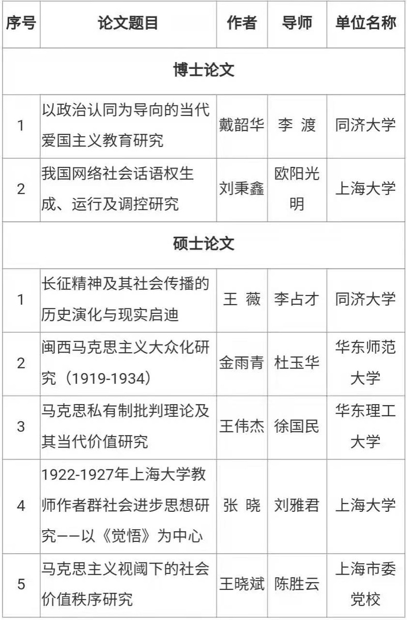 据悉,“登峰计划”由中共上海市教育卫生工作委员会、上海市教育委员会、上海市学位委员会办公室于2013年起共同实施,旨在有效促进马克思主义理论学科研究生培养质量的提高,积极培育本学科的上海市研究生优秀成果(学位论文)乃至全国优秀博士学位论文,着力培养具有一定影响力、高水平的优秀人才。“登峰计划”每年评选一次,本次全市共有2篇博士论文和5篇硕士学位论文入选。本次硕士学位论文的入选,既体现了我校马克思主义理论学科人才培养的质量和水平,也展现了我校马克思主义理论研究生的学术风采和社会影响。
