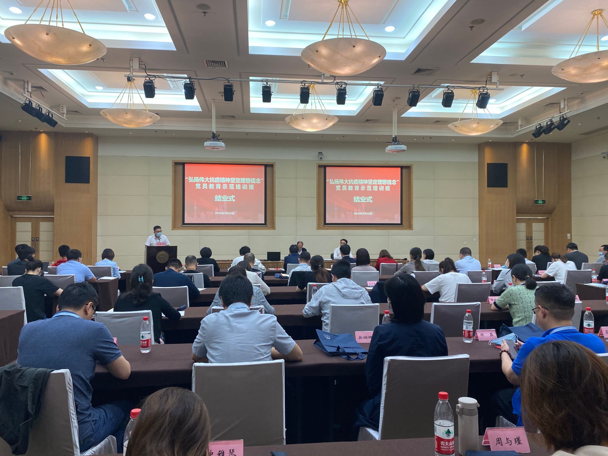 本网讯 9月28日至30日,市委组织部、市委党校共同举办“弘扬伟大抗疫精神坚定理想信念”党员教育示范培训班。市委组织部副部长、市社会工作党委书记孙甘霖作开班动员讲话,市委党校常务副校长徐建刚讲授“深入学习‘四史’,牢记初心使命”首堂课程,市委组织部组织一处处长李微出席结业式并讲话。参加本次培训的80名学员,都是今年抗疫一线火线入党的新党员,既有援鄂医疗队的医生、护士,也有海关、警察、新闻工作者、社区工作者、志愿者和工程建设者,其中多人荣获“全国抗击新冠肺炎疫情先进个人”“全国三八红旗手”“全国卫生健康系统新冠肺炎疫情防控工作先进个人”“上海市抗击新冠肺炎疫情先进个人”“湖北省新时代‘最美逆行者’”等荣誉称号。