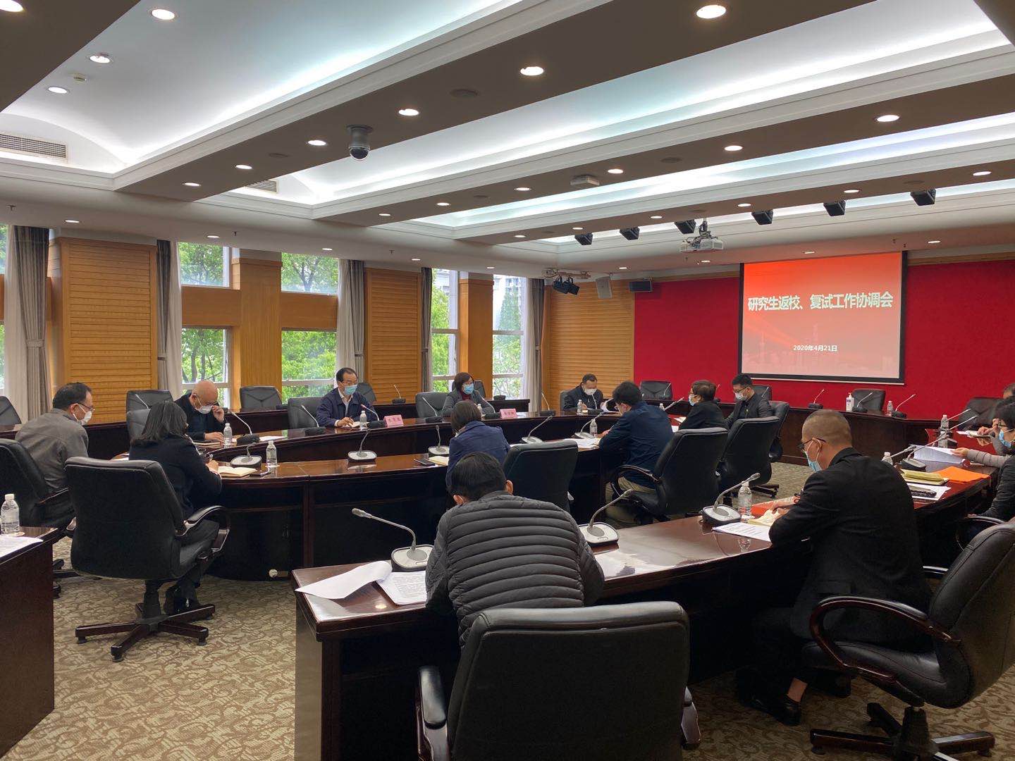 会议强调,研究生部要全面摸清学生信息,做到准、细、实;各个部门要加强协调沟通,做到换位思考,相互理解和配合,做好学生返校前、返校后以及研究生复试的各项准备工作;既要严格落实防控要求,又要关心爱护学生,做好学生的情绪和心理疏导;要在动态中不断调整和细化具体措施并加紧落实,确保学生安全有序开学返校。