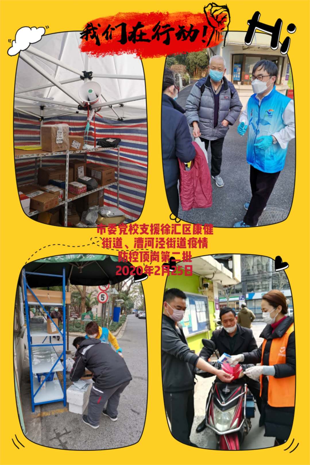 本网讯 家住徐汇区康健社区和漕溪路社区的居民们,常常能看到一群身穿蓝色或者橙色背心的身影。他们或手持体温计为进出的人们测量体温、或在更换出入证的队伍旁维持秩序、或社区巡逻时对聚集聊天的大爷大妈们苦口婆心、或为居家隔离的群众送上快递和蔬菜……他们耐心细致的服务得到了群众们的理解和点赞,他们是市委党校第二批增援徐汇区基层疫情防控工作的50名党员干部。