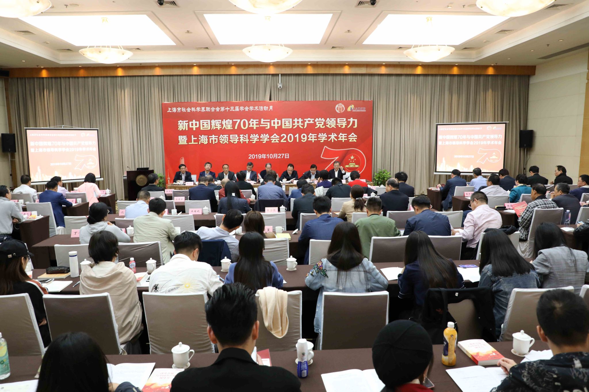 本网讯 10月27日,新中国辉煌70年与中国共产党领导力暨上海市领导科学学会2019年学术年会在我校召开。上海市社联党组成员、副巡视员陈麟辉出席会议并致辞,上海国际问题研究院学术委员会主席杨洁勉研究员受邀出席作主旨演讲,上海市领导科学学会会长、中共上海市委党校副校长郭庆松教授代表学会作年度工作总结并作主题报告,学会副会长、中共上海市奉贤区委常委、宣传部部长徐卫主持开幕式,学会副会长、中国浦东干部学院教研部主任赵世明教授主持研讨会,学会学术委员会副主任、解放日报党委副书记周智强作大会总结。
