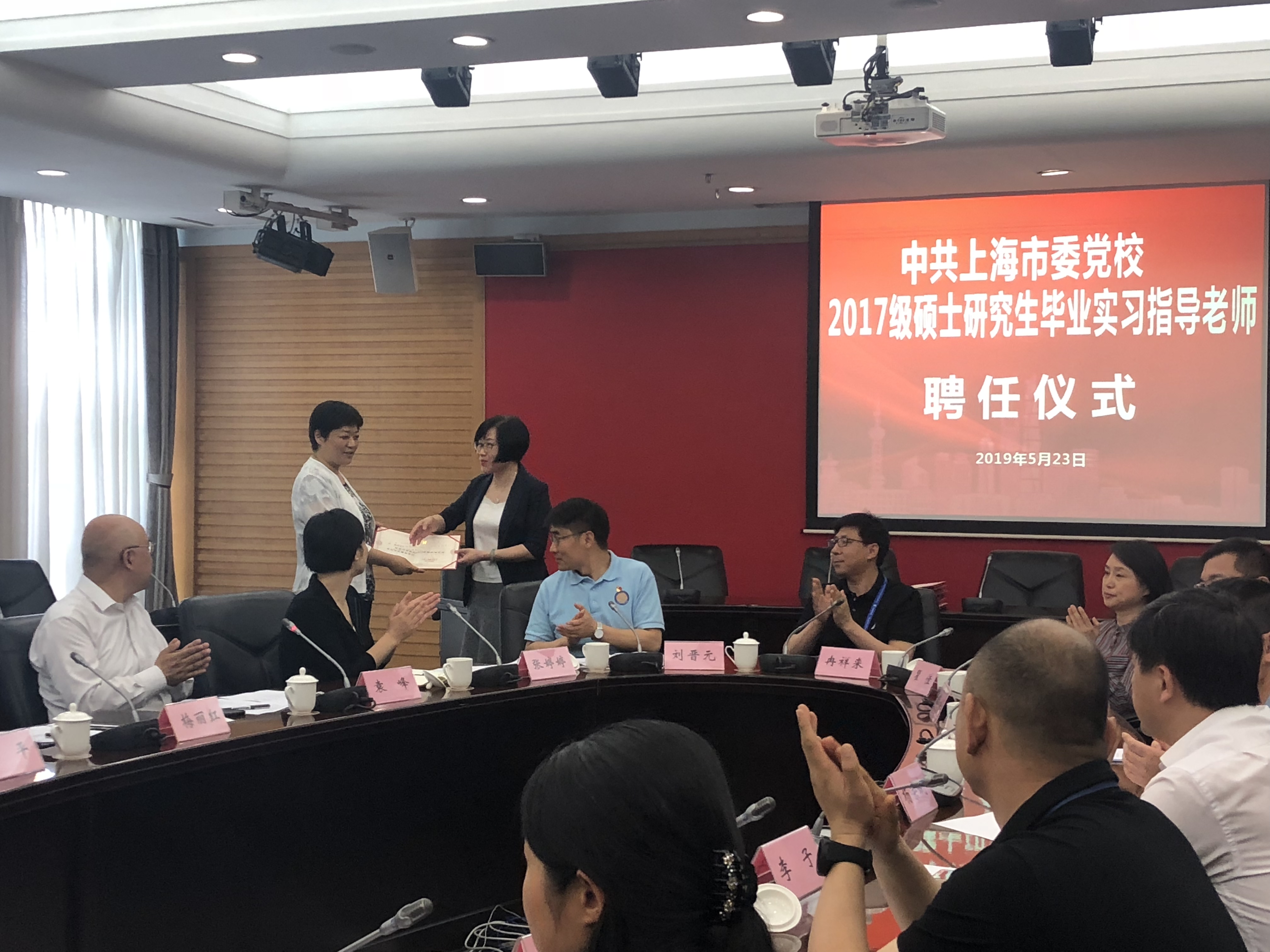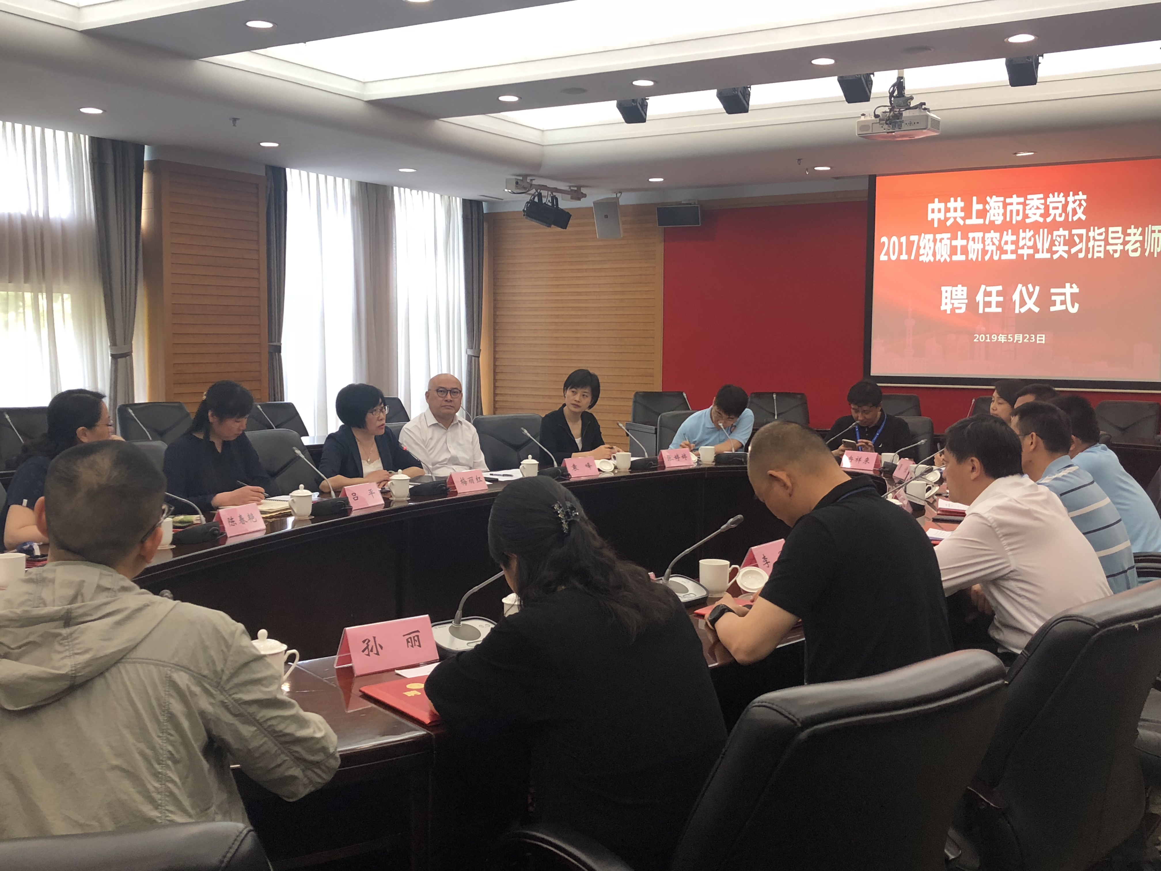 本网讯 5月23日下午,2017级学术型硕士研究生毕业实习指导老师聘任仪式在海兴教学楼202室举行。教育长梅丽红与中青班担任实习指导老师的学员、研究生参加本次会议。