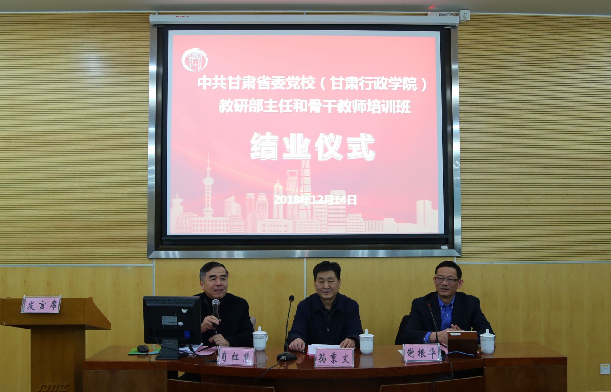 本网讯 12月14日上午,甘肃省委党校(甘肃行政学院)教研部主任和骨干教师培训班在我校梅陇校区顺利结业。副校院长谢根华、甘肃省委党校副校院长孙秉文出席结业式并讲话。