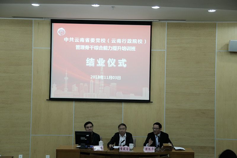 本网讯 11月3日上午,云南省委党校(云南行政学院)管理骨干综合能力提升培训班圆满完成各项培训任务,在我校梅陇校区顺利结业,副校院长谢根华、云南省委党校副校院长梅毅全出席结业式并讲话,教师进修学院有关负责人出席结业式。