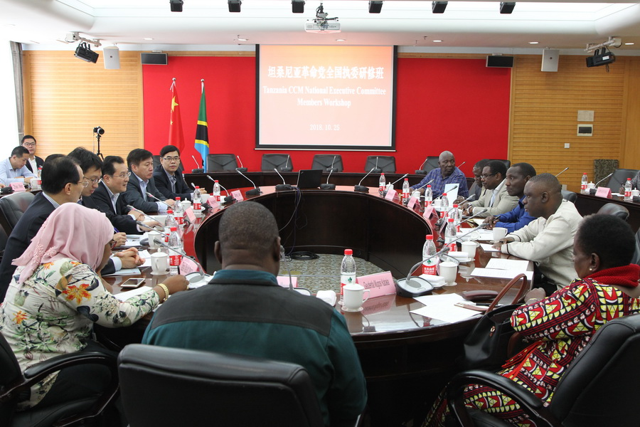 本网讯 10月25日上午,坦桑尼亚革命党全国执委研修班一行在坦桑尼亚驻华大使及中联部领导的陪同下与我校院领导举行会谈,常务副校院长沈炜主持会见,副校院长曾峻、朱亮高陪同出席。