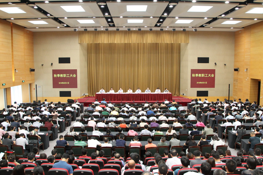 本网讯 8月31日上午,校院召开秋季教职工大会。校院领导沈炜、李渤、郭庆松、曾峻、谢根华、李宁、朱亮高、梅丽红出席。会议宣布了校委班子成员分工。校委班子成员就分管协管工作作了发言。全体教职工参加会议。