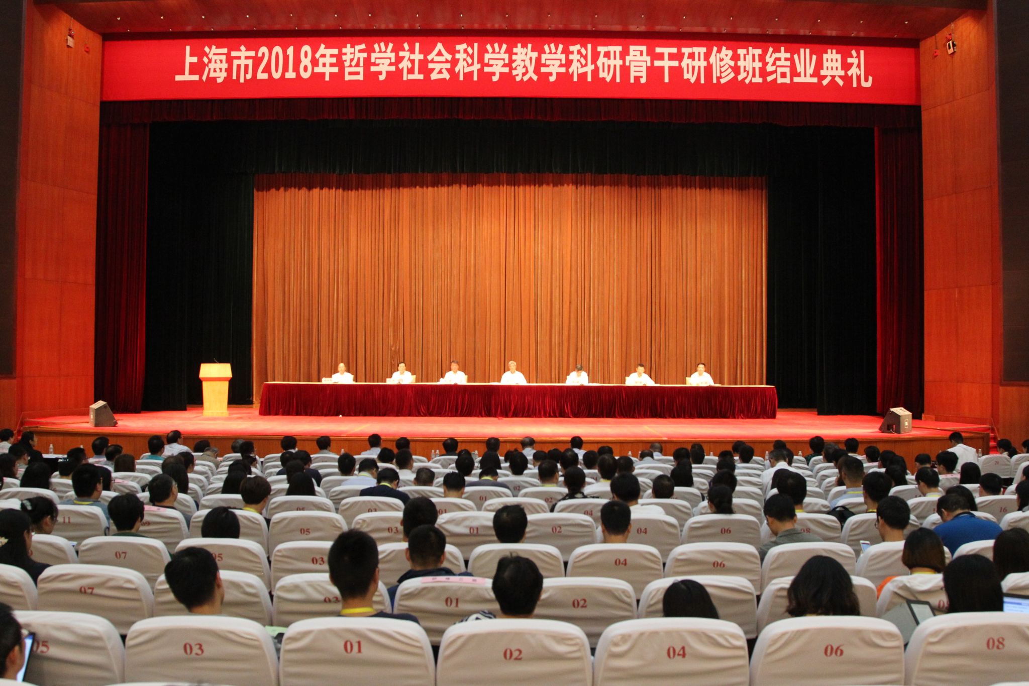 结业典礼由市委宣传部副部长燕爽主持,市教卫工作党委副书记、市教卫主任陆靖作研修班工作总结,市委组织部副部长陈皓宣读研修班获奖名单,4位学员代表上台作交流发言。市委党校常务副校长沈炜、市教卫党委副书记、市教委副主任李昕、市财政局副局长金为民、市哲学社会科学教学科研骨干研修工作领导小组成员、部分高校分管领导出席结业典礼。