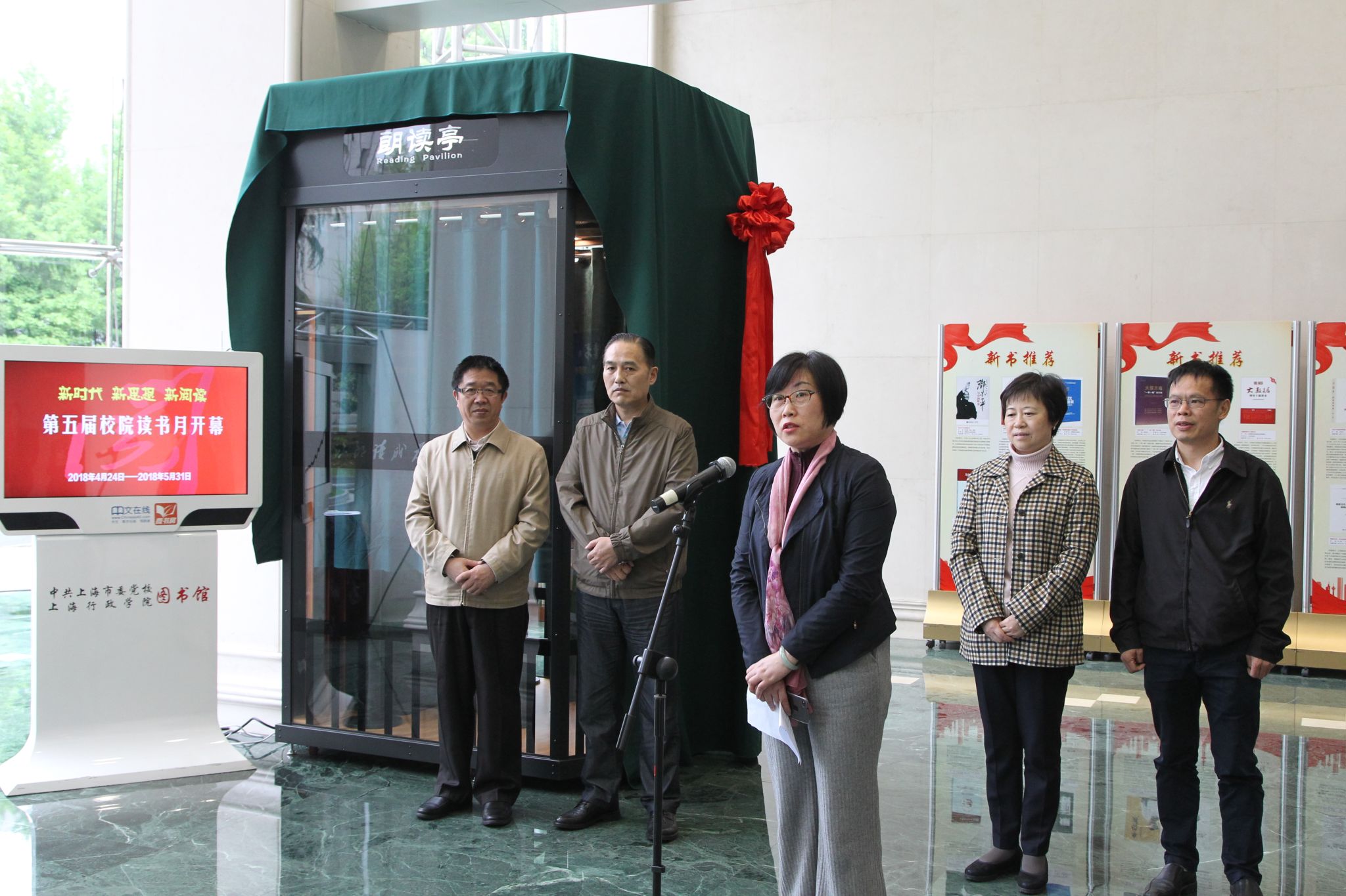本网讯 4月24日上午,中共上海市委党校、上海行政学院“第五届校院读书月”开幕仪式在图书馆一楼大厅举行,教育长梅丽红出席并致辞。副巡视员、党群工作部主任董凌白,工会主席张国新,调研督查处处长、阅读协会副会长赵建平,研究生部主任罗峰出席开幕式。教务处、研究生部、马克思主义学院的部分教职工以及第三分校、第五分校相关部门的负责同志参加。
