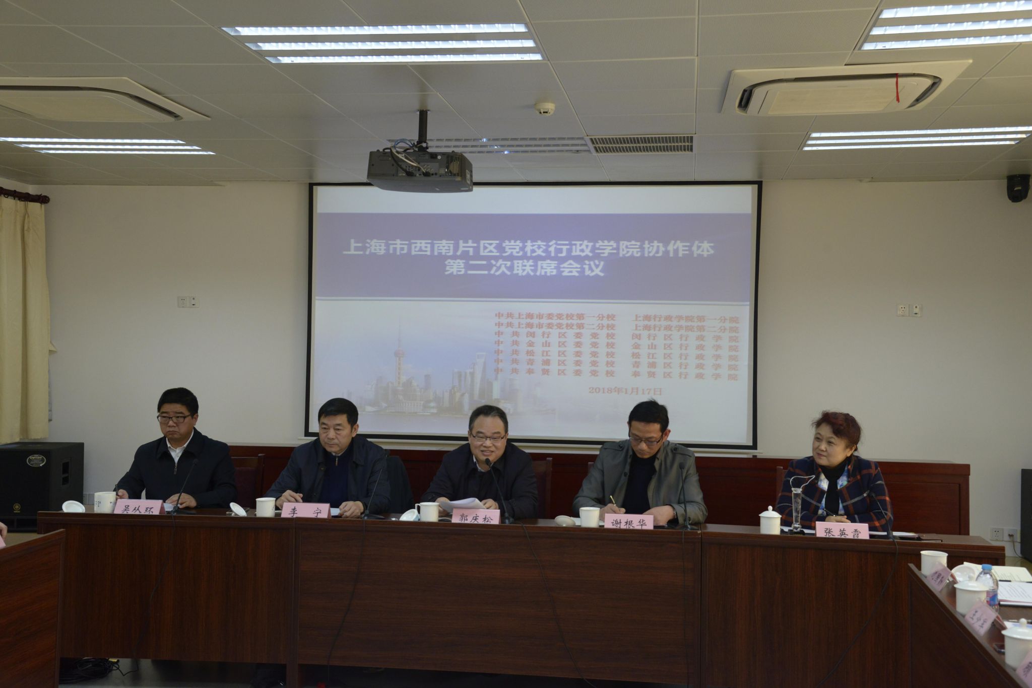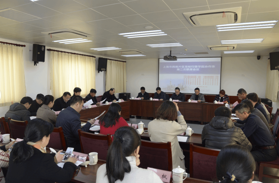 本网讯 1月17日,上海市西南片区党校行政学院协作体第二次联席会议在中共上海市委党校、上海行政学院第二分校院召开。会议由第二分校院副校院长吴从环主持,协作体成员单位校领导和办公室、教务处等相关部门负责人共35人参加会议。中共上海市委党校、上海行政学院副校院长郭庆松出席会议并讲话。