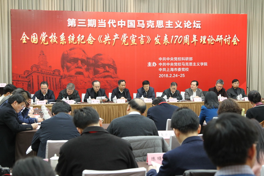 本网讯 2月24日至25日,值《共产党宣言》发表170周年之际,第三期当代中国马克思主义论坛·全国党校系统纪念《共产党宣言》发表170周年理论研讨会在中共上海市委党校召开。研讨会由中共中央党校科研部、中共中央党校马克思主义学院、中共上海市委党校联合举办,来自全国党校系统的100多位专家学者参加会议。