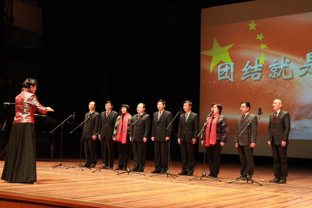 2016年新年联欢会在热情洋溢、活力十足的开场舞中拉开了序幕。校委委员首先登台高唱《团结就是力量》,歌曲气势磅礴、催人奋进,背景墙上出现的一张张教职工兢兢业业、拼搏奉献的身影,整个节目展现了党校人团结一心、奋发进取的豪迈气概。原创三句半《校院故事表一表》盘点了校院建设发展的成绩,给人以正能量,又以诙谐幽默的表演形式赢得台下观众阵阵喝彩。联欢会现场歌声悠扬,舞步曼妙,精彩看点不断。京歌《没有共产党就没有新中国》《我是一个中国人》慷慨激昂;诗朗诵《图书馆之歌》书香颂情,《第十一个乡村女教师》感人至深;舞蹈《梦圆华夏》气势恢宏;合唱《灯光》《共筑中国梦》温婉唯美;海兴大厦工装展示艺术范儿十足。五个分校也分别带来了瑜伽表演《逐梦绿洲》、朗诵《我们的2015》、朗诵《党的旗帜在党校上空高高飘扬》、舞蹈《我们的中国梦》、萨克斯独奏《月亮代表我的心》、手影舞《发光如星》,展示了各分校文化建设的风采。精彩的文艺节目引发了现场观众的欢声笑语和热烈掌声,不断将现场气氛推向高潮。最后,联欢会在大家耳熟能详的《同一首歌》旋律中落下帷幕。