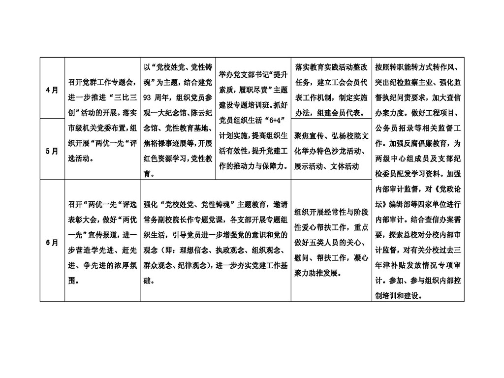 会议集中讨论了紧贴中心工作开展党建、推进党的群众路线教育实践活动整改事项落实、进一步做好“两优一先”评选、认真开展纪检和内审工作、进一步加强总校分校在党建工作上对接等问题。