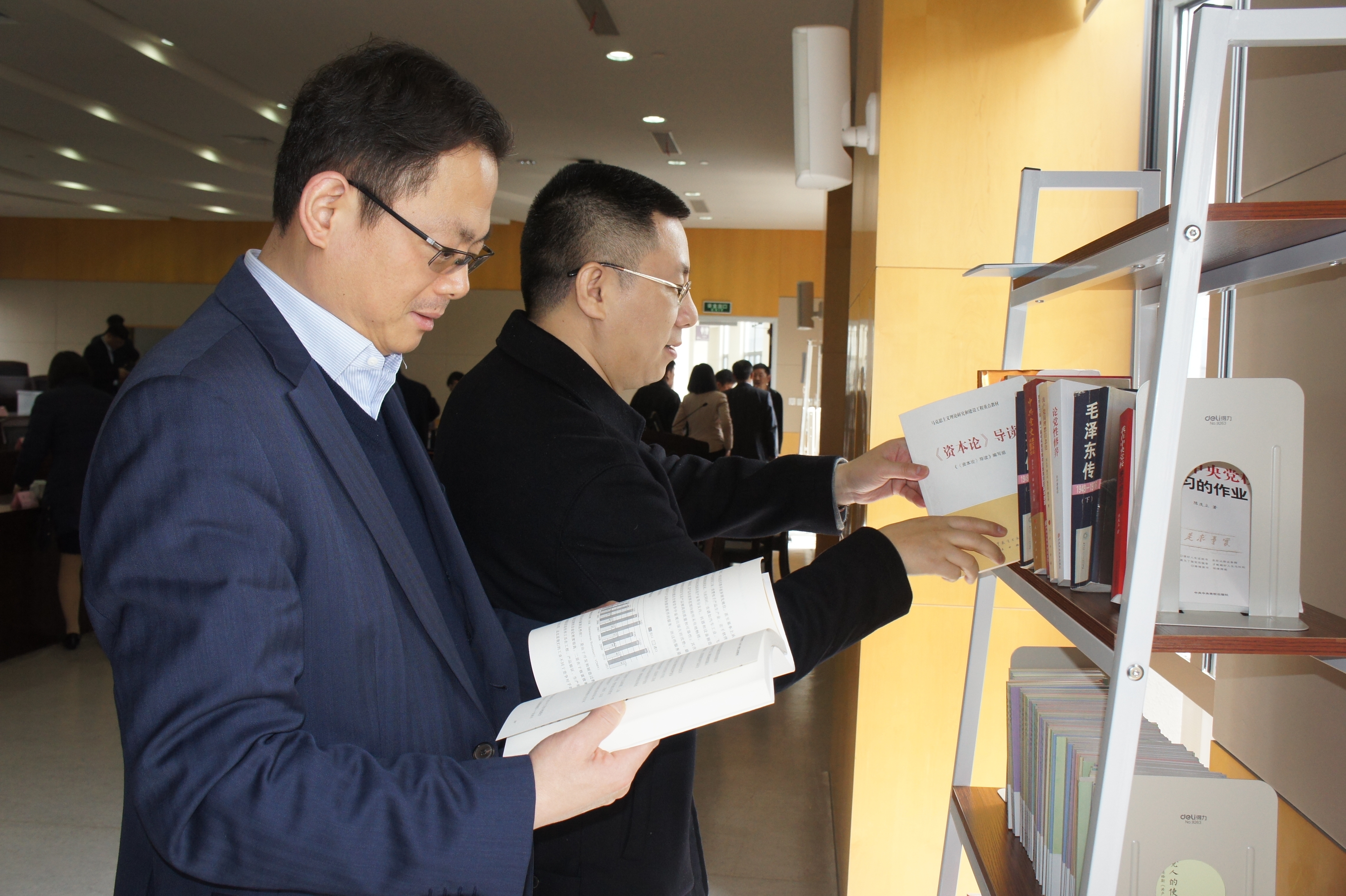 为了进一步促进学习效果,第49期中青班在教室里设立了“智慧漂流”学习小书架,供班级学员们借阅学习。3月19日,书架刚一亮相,就吸引了学员们的注意。学员们或驻足浏览,或抽出一本来细细阅读。