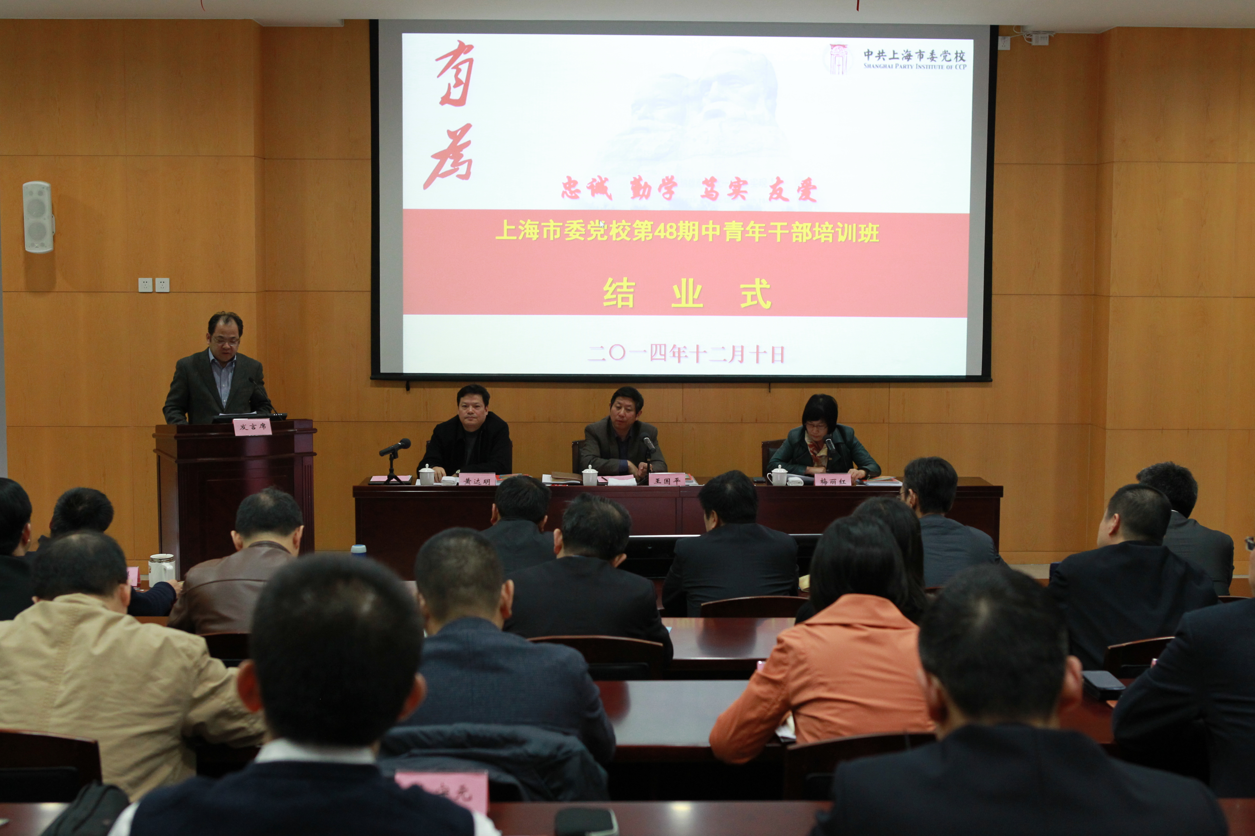 本网讯 12月10日上午,第48期中青年干部培训班结业式在海华教学楼301教室举行。市委党校常务副校长王国平出席并讲话。市委党校教育长梅丽红主持结业式。市委组织部干教处调研员、副处长黄达明出席。