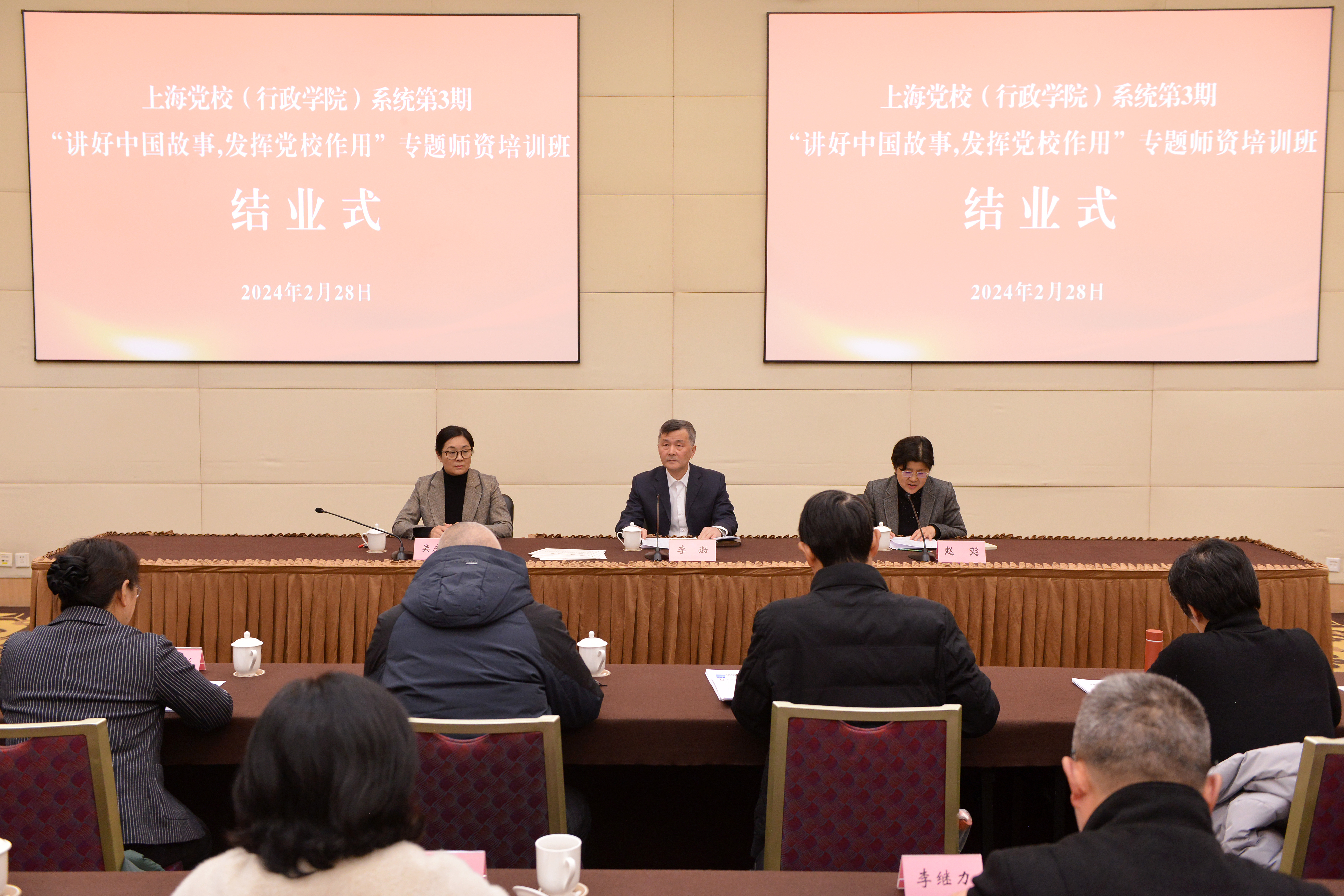 本网讯 2月28日上午,上海党校(行政学院)系统第3期“讲好中国故事,发挥党校作用”专题师资培训班圆满结业。上海市委党校(上海行政学院)副校(院)长李渤出席结业式并讲话。公务员培训处、校院工作处负责人以及16家区委党校(行政学院)分管校(院)领导出席。