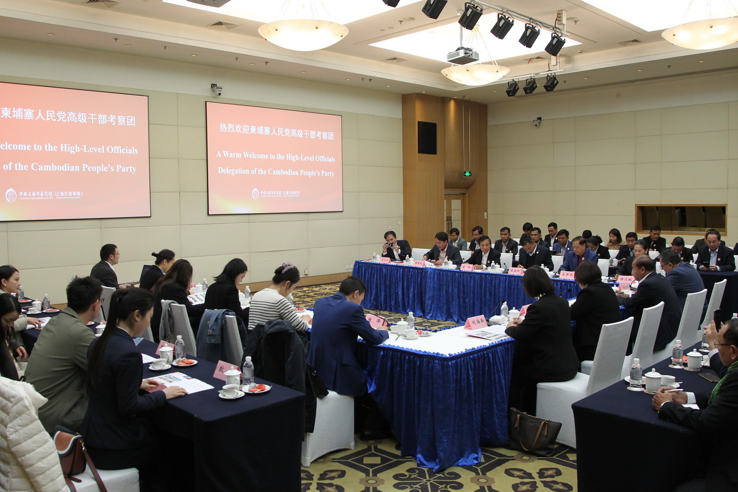 本网讯 11月17日,柬埔寨人民党中央委员、中央外委会副主席盖索巴率领的高级干部考察团一行56人来访,常务副校(院)长曾峻出席会见,副校(院)长梅丽红主持会见,中联部、市外办和外事处相关同志陪同。