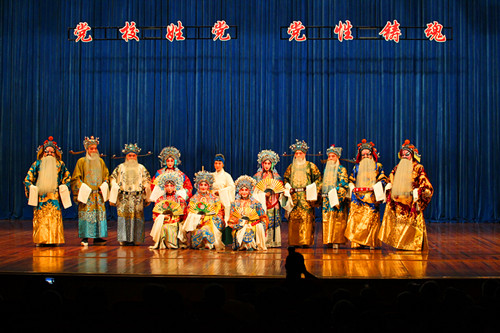 联欢会上,离退休老同志们以合唱形式最先登场,他们时而引吭高歌,时而低婉轻柔,将大家带入歌声的海洋。随后,戏曲协会的会员们浓妆重彩登场联唱,他们比划有致,唱腔有板有眼。传统舞蹈《礼仪之邦》与伦巴双人舞《地心引力》各领风情,欲比高低。清远悠扬的笛子独凑回荡全场,令人耳目一新。太极拳协会和新世纪物业的同志们一身轻盈,表演了陈氏太极拳,他们推掌出拳,步步抓痕却似如履薄冰,充分展示了陈氏太极阴阳糅合、刚柔并济的神韵。校院青年教职工西班牙《卡门》动感起舞、热烈奔放,在激光四射的舞台中展现党校人青春活力,赢得了全场阵阵掌声。联欢会在四分校教职工一曲《年轻的朋友来相会》中徐徐落幕。