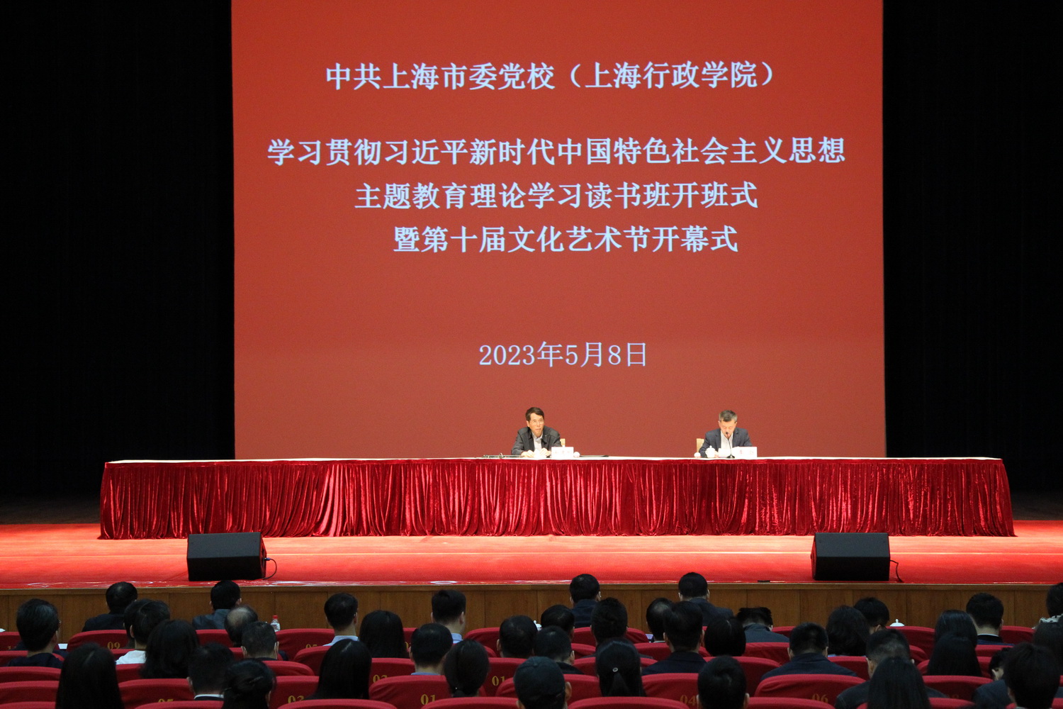 本网讯 5月8日上午,中共上海市委党校(上海行政学院)学习贯彻习近平新时代中国特色社会主义思想主题教育理论学习读书班开班式暨第十届文化艺术节开幕式在大礼堂举行,常务副校(院)长徐建刚为大家主讲题为“调查研究是我们党的传家宝——从党的百年历程学习党的优良传统”的专题党课。市委第二巡回指导组组长李新华、市纪委监委驻市委组织部纪检监察组组长朱鸣、副组长夏勇带队全程参与并指导。参加本期读书班的人员以校、处两级理论学习中心组成员为主体,同时涵盖校(院)四级调研员(含)以上参公管理人员和副教授(含)以上事业编人员共200多人。开班式更是扩大到全体党员、全体教职工和在校学习的第63期中青班全体学员共计520多人参加。