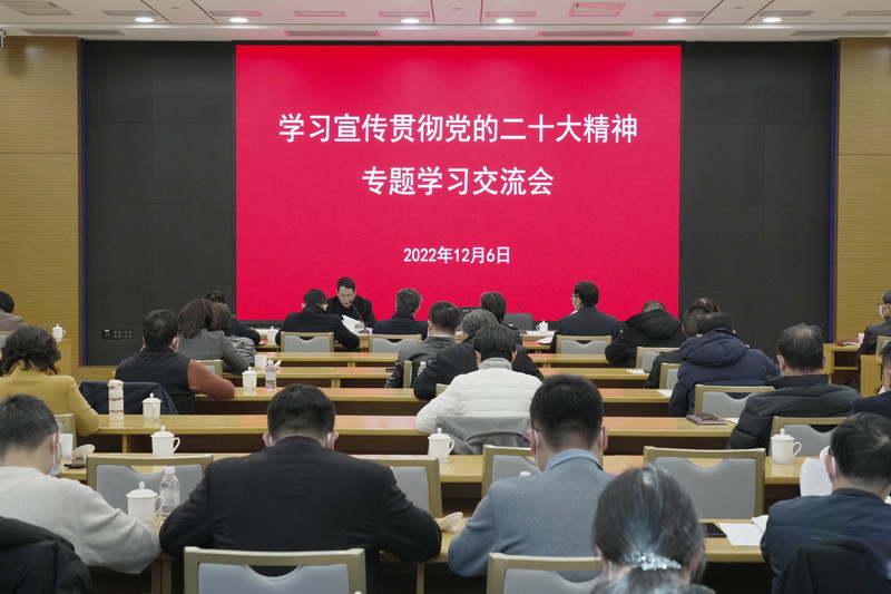 本网讯 12月6日下午,校(院)在海中101教室举行学习宣传贯彻党的二十大精神专题学习交流会,常务副校(院)长徐建刚出席并主持会议。市纪委监委派驻市委组织部纪检监察组组长朱鸣,校委委员李渤、曾峻、谢根华、梅丽红、罗峰出席会议,二级巡视员,部门负责人、党支部书记等校处两级中心组及市委组织部派驻纪检组成员共120人与会。