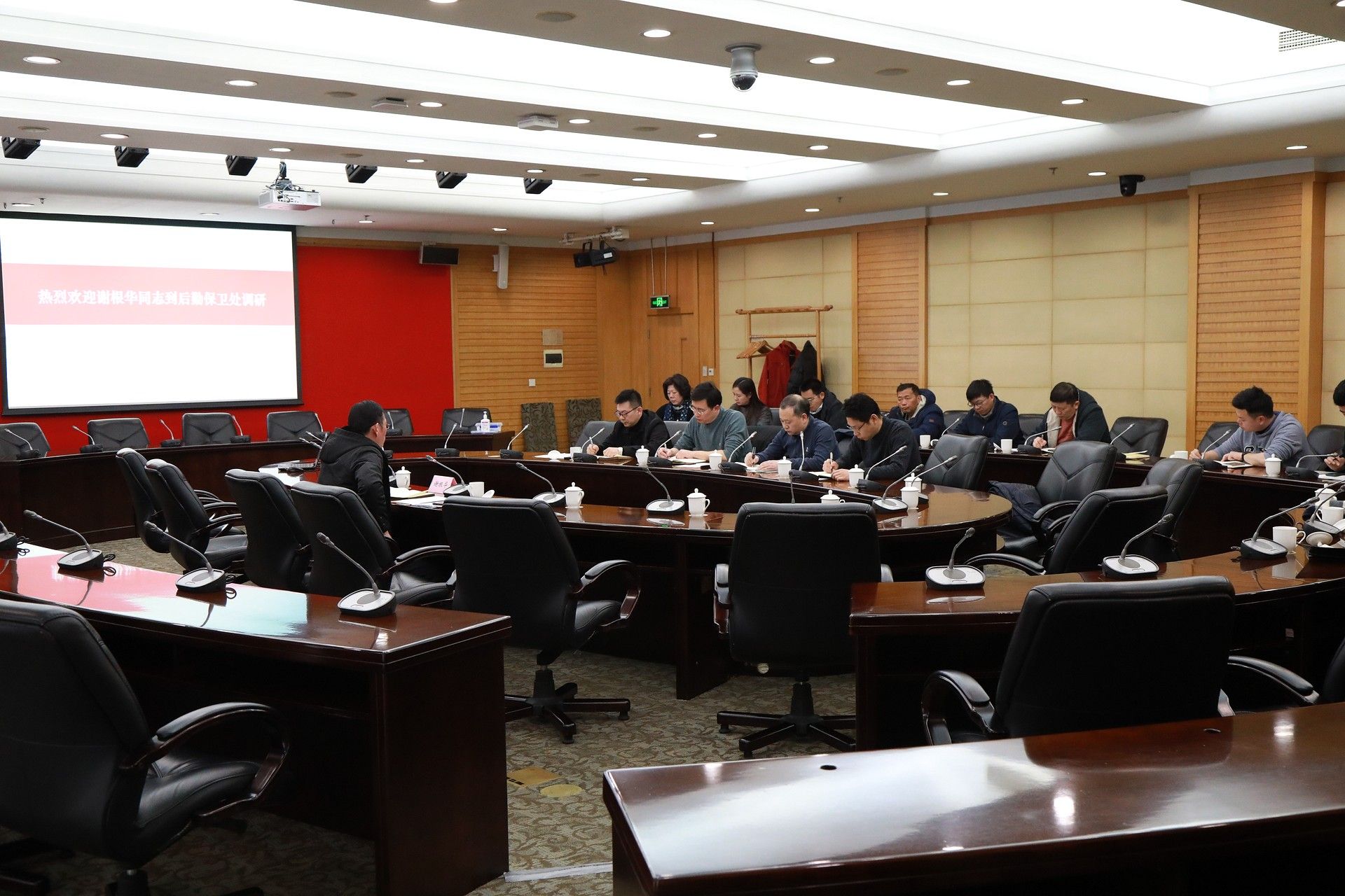 本网讯 2月22日下午,副校(院)长谢根华到后勤保卫处进行工作调研。后勤保卫处全体同志参加调研。