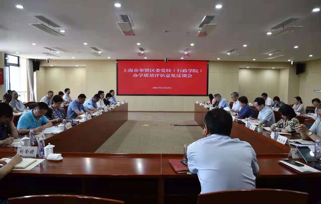 本网讯 6月23日,上海市区级党委党校(行政学院)办学质量评估工作组对奉贤区委党校(行政学院)开展办学质量评估。市委党校(行政学院)副校(院)长、评估工作组组长谢根华,市委组织部干部教育处、市委党校(行政学院)相关部门负责人一行26人莅临指导。
