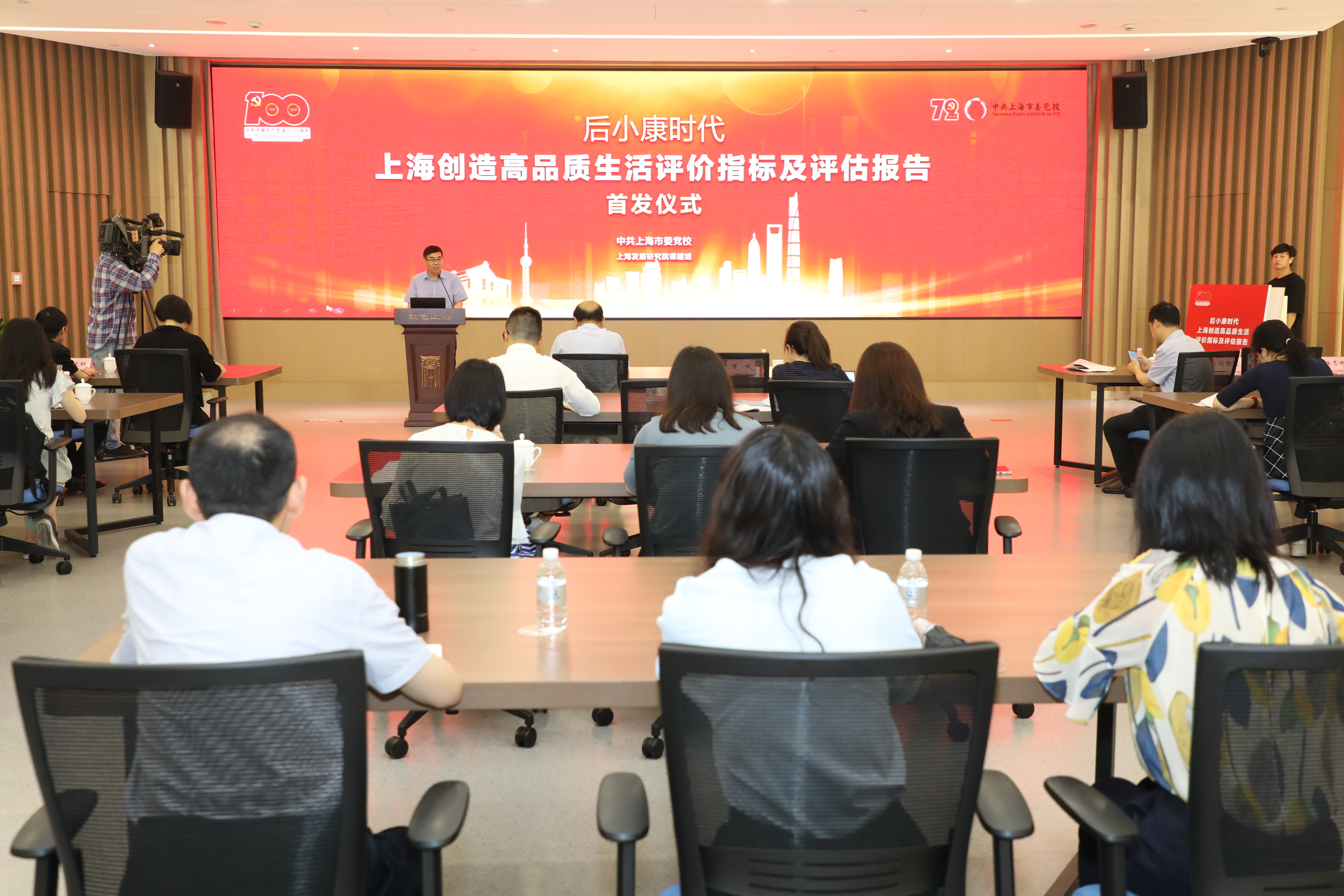 本网讯 6月18日上午,后小康时代上海创造高品质生活评价指标及评估报告首发仪式在中共上海市委党校(上海行政学院)海中楼102“红色上海”主题教室隆重举行。上海市委党校(行政学院)副校(院)长曾峻出席并致辞,解放日报社党委副书记周智强作总结点评。上海市委党校(行政学院)决策咨询部主任唐颖主持仪式。报告执笔人、上海市委党校上海发展研究院副院长潘文轩研究员、于健宁博士对评价指标及评估报告作了详细介绍并回答在场记者提问,解放日报(上观新闻)、文汇报、中国社会科学报等10余家新闻媒体受邀参加首发仪式。