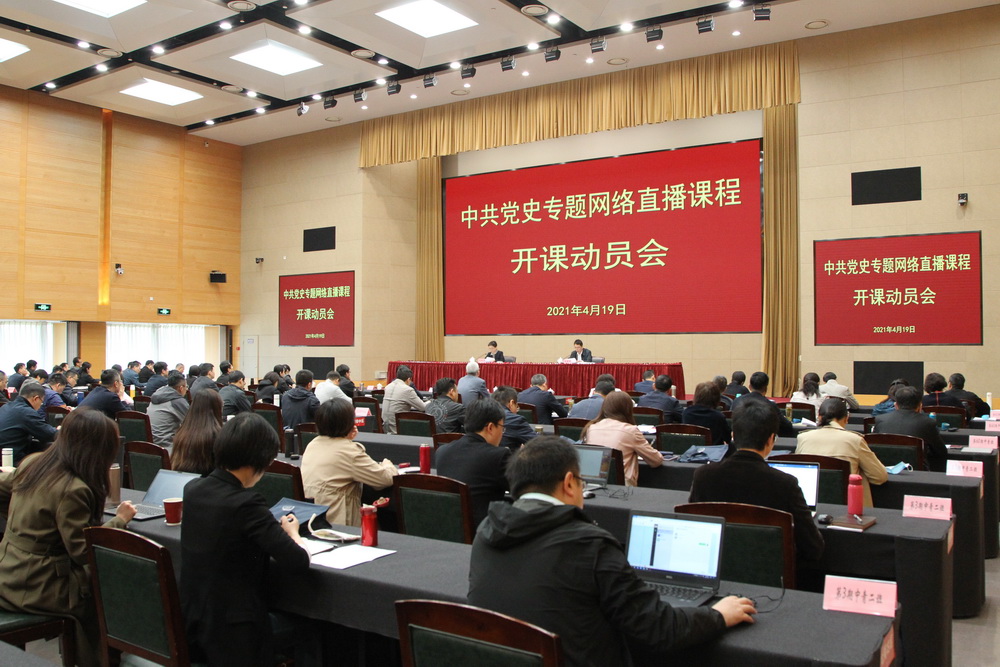 开课仪式后,学员和教职工们通过“网上党校”平台集中收看了中央党校(国家行政学院)副校(院)长谢春涛教授讲授的“习近平关于党的历史重要论述”,这是本期培训的第一课。谢春涛教授从九个方面系统阐述了习近平总书记关于党的历史重要论述,强调要认真研读党史基本著作,深刻把握党史学习的六个重点,最终实现进一步学懂弄通做实习近平新时代中国特色社会主义思想,增强“四个意识”,坚定“四个自信”,切实做到“两个维护”。