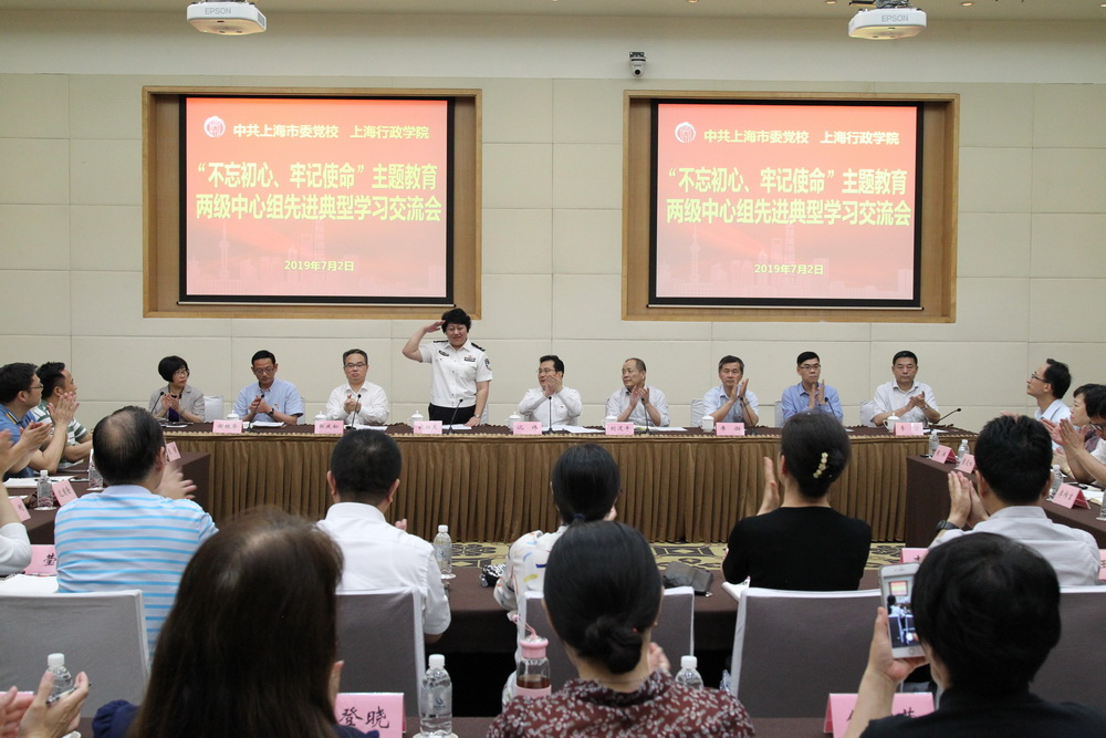 本网讯 7月2日下午,校院“不忘初心、牢记使命”主题教育两级中心组先进典型学习交流会在海兴教学楼201会议室举行,常务副校院长、校院“不忘初心、牢记使命”主题教育领导小组组长沈炜主持并讲话。党的十九大代表、上海市三八红旗手、市公安局经侦总队副总队长钱红昊应邀作题为“用忠诚和智慧守护好人民的美好生活”的报告,副校院长郭庆松、曾峻交流发言。市委“不忘初心、牢记使命”主题教育第五巡回指导组副组长刘道平出席指导。