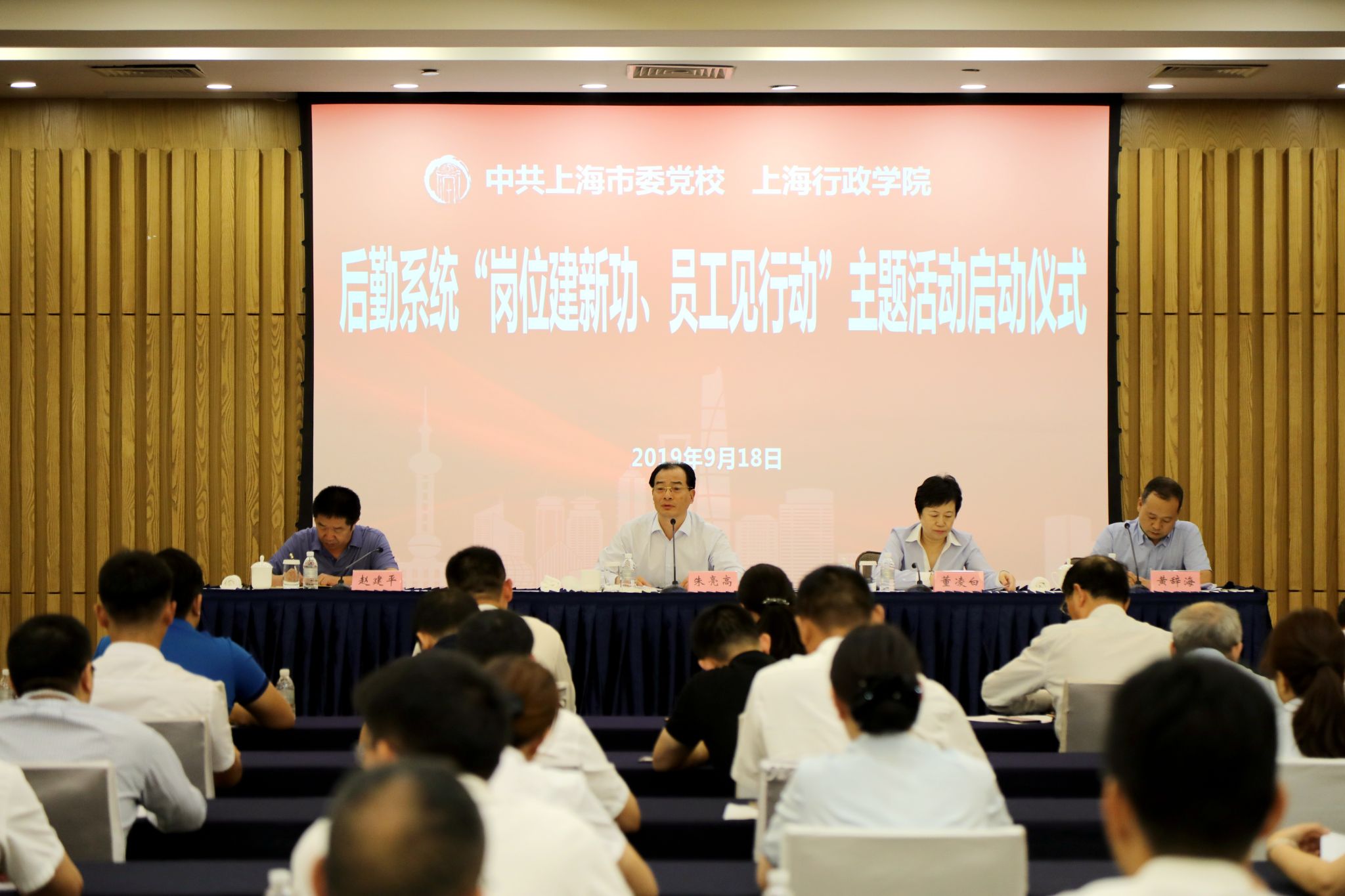 本网讯 9月18日下午,由党群工作部和后勤保卫处联合组织、校院常驻服务单位共同参与的后勤系统“岗位建新功、员工见行动”主题活动启动仪式举行。副校院长朱亮高出席并讲话。副巡视员董凌白主持启动仪式。机关党委专职副书记、党群工作部主任赵建平出席。