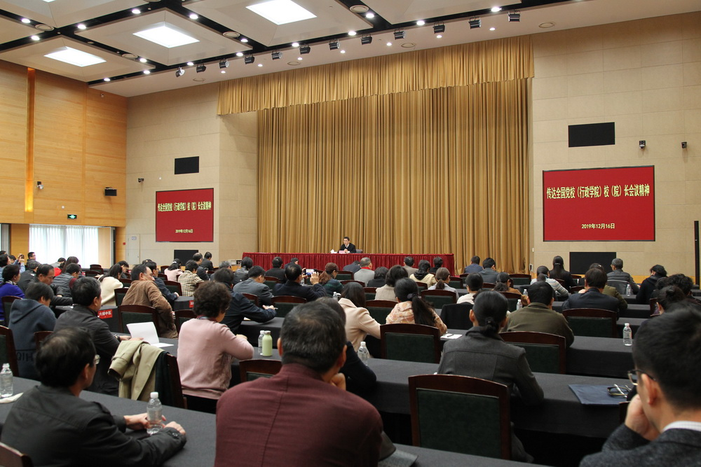 本网讯 12月16日上午,校院举行两级中心组(扩大到全体教师)专题学习会,传达学习全国党校(行政学院)校(院)长会议精神。常务副校(院)长徐建刚传达了中共中央政治局委员、中组部部长、中央党校(国家行政学院)校(院)长陈希同志重要讲话,传达了中央党校(国家行政学院)分管日常工作的副校(院)长何毅亭同志的总结讲话,介绍了全国党校(行政学院)系统“学习贯彻习近平总书记关于党校(行政学院)工作重要论述和《中国共产党党校(行政学院)工作条例》研讨班”的研讨情况。