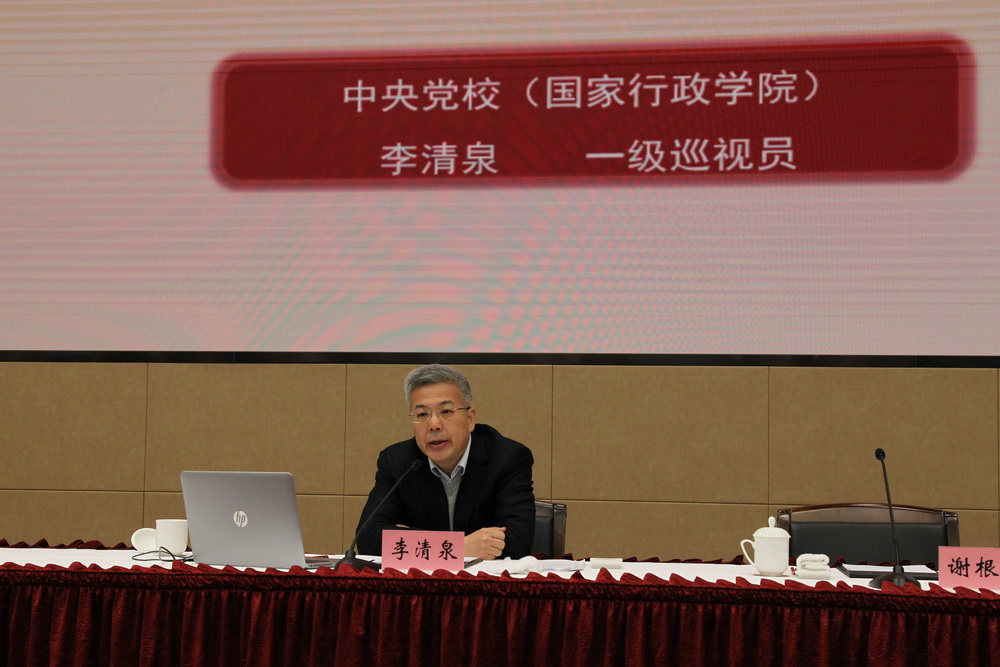 李清泉从《条例》起草背景和总体思路、起草过程、总体框架和各部分亮点、需要深入把握的主要内容和如何贯彻落实五个方面进行了详细阐述。重点解读“八个深入把握”即深入把握办学的指导思想、深入把握工作的职责定位、深入把握教育培训的重中之重、深入把握党校姓党的根本原则、深入把握从严治校的基本要求、深入把握质量立校的重要遵循、深入把握教学科研管理等各方面的规范性要求、深入把握解决重点难点问题的创新思路和措施。明确了贯彻落实《条例》的重点:一是各级党校(行政学院)要配合组织好同级党委(党组)理论学习中心组的学习工作;二是要把《条例》纳入校(院)委会理论学习中心组学习内容,组织好专题学习培训,对照《条例》固根基、扬优势、补短板、强弱项;三是抓好《条例》督促指导工作。