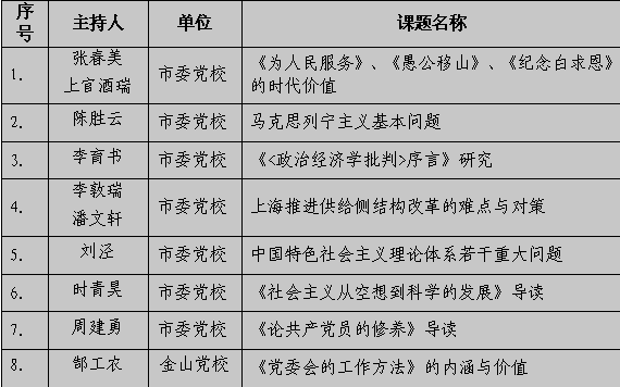 本网讯  近日,上海市委党校2016年度教研咨一体化课程(课题)评审会议举行,副校长曾峻主持会议,教务处、科研处、培训处、调研督查处负责人等近10人与会。