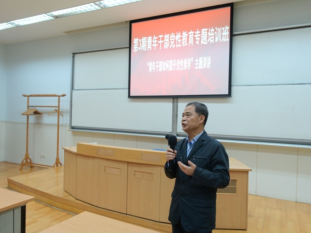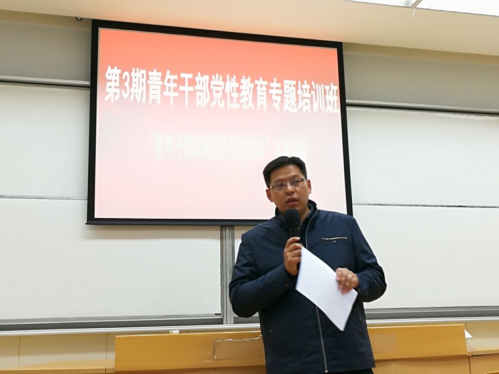 本网讯 11月28日下午,载着满满的学习收获,第3期青干班学员开展了“青年干部如何提升党性修养”的主题演讲。青干班党支部书记赵坚担任主持,班级组织员、班主任同学员们一起参加了主题演讲活动。