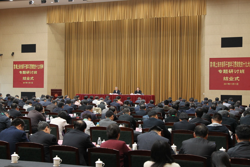 本网讯  11月11日上午,第1期领导干部学习贯彻党的十九大精神专题研讨班结业。市委副书记、市委党校校长尹弘出席结业式并作总结讲话,市委常委、市委组织部部长吴靖平主持结业式。